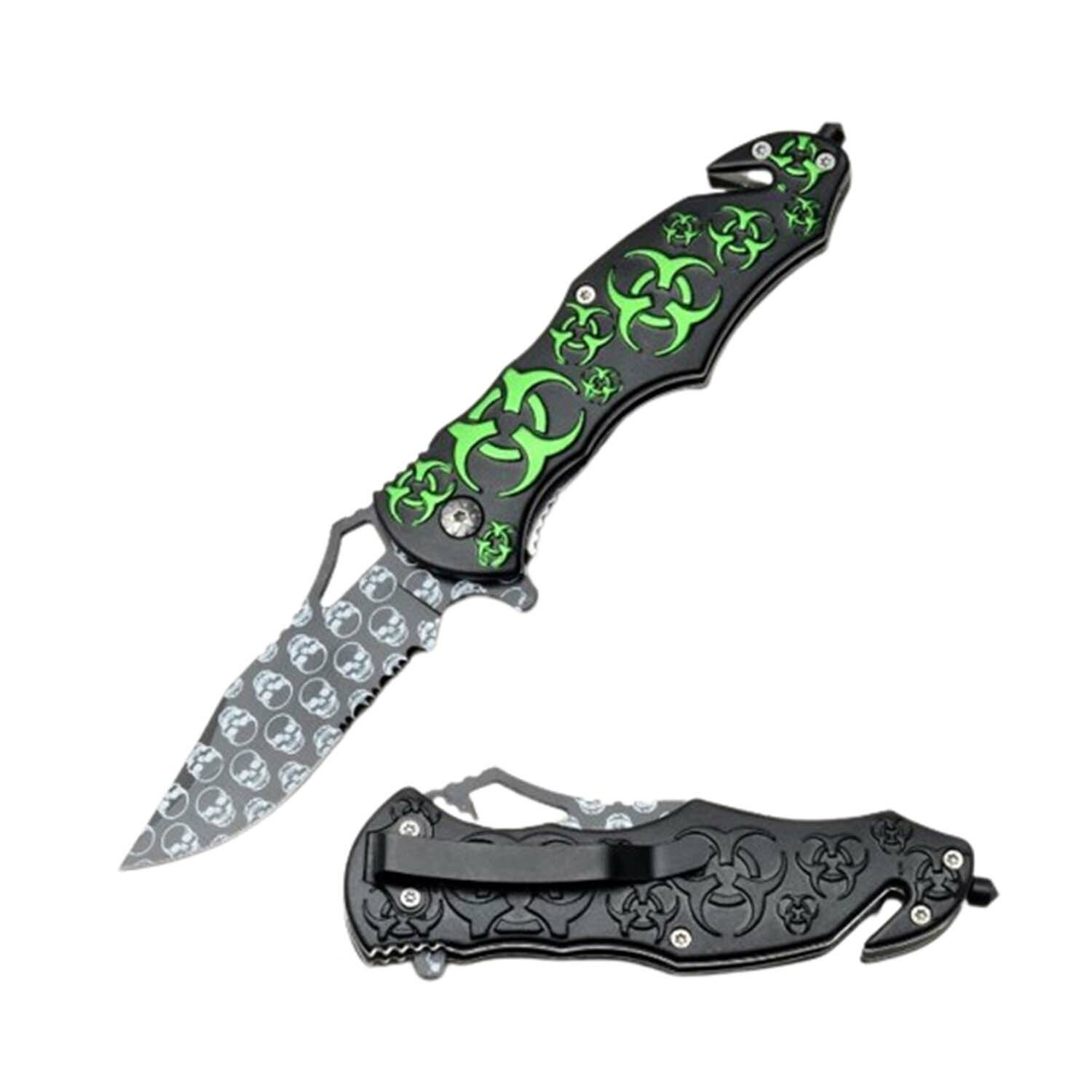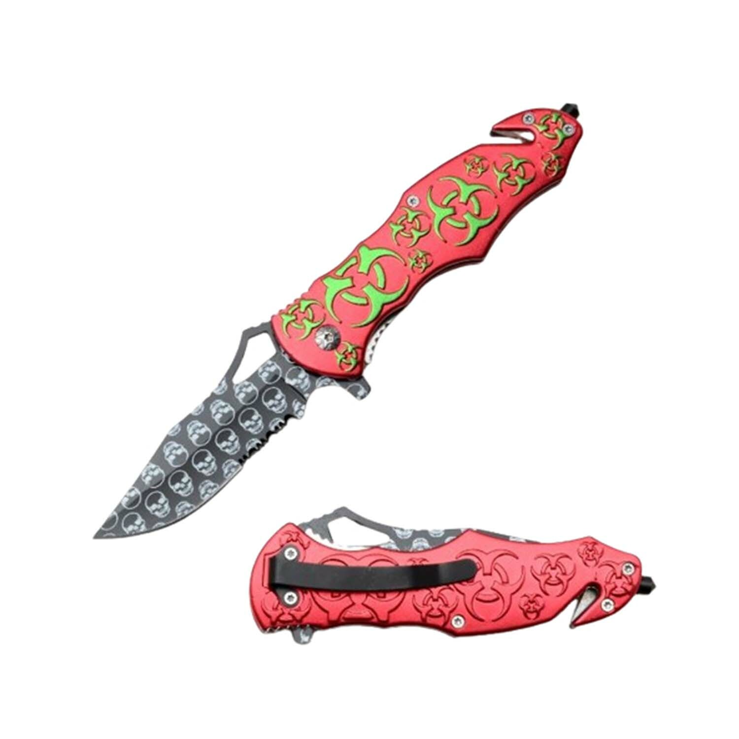 This collection of spring assisted pocket knives is built for fast, reliable one handed use with bold, graphic designs that stand out. Each piece features a tension driven opening mechanism for quick deployment, textured grips for control, and durable stainless steel blades suited for everyday tasks. From tactical profiles to statement finishes, these knives deliver dependable function and solid build quality at an easy entry price.