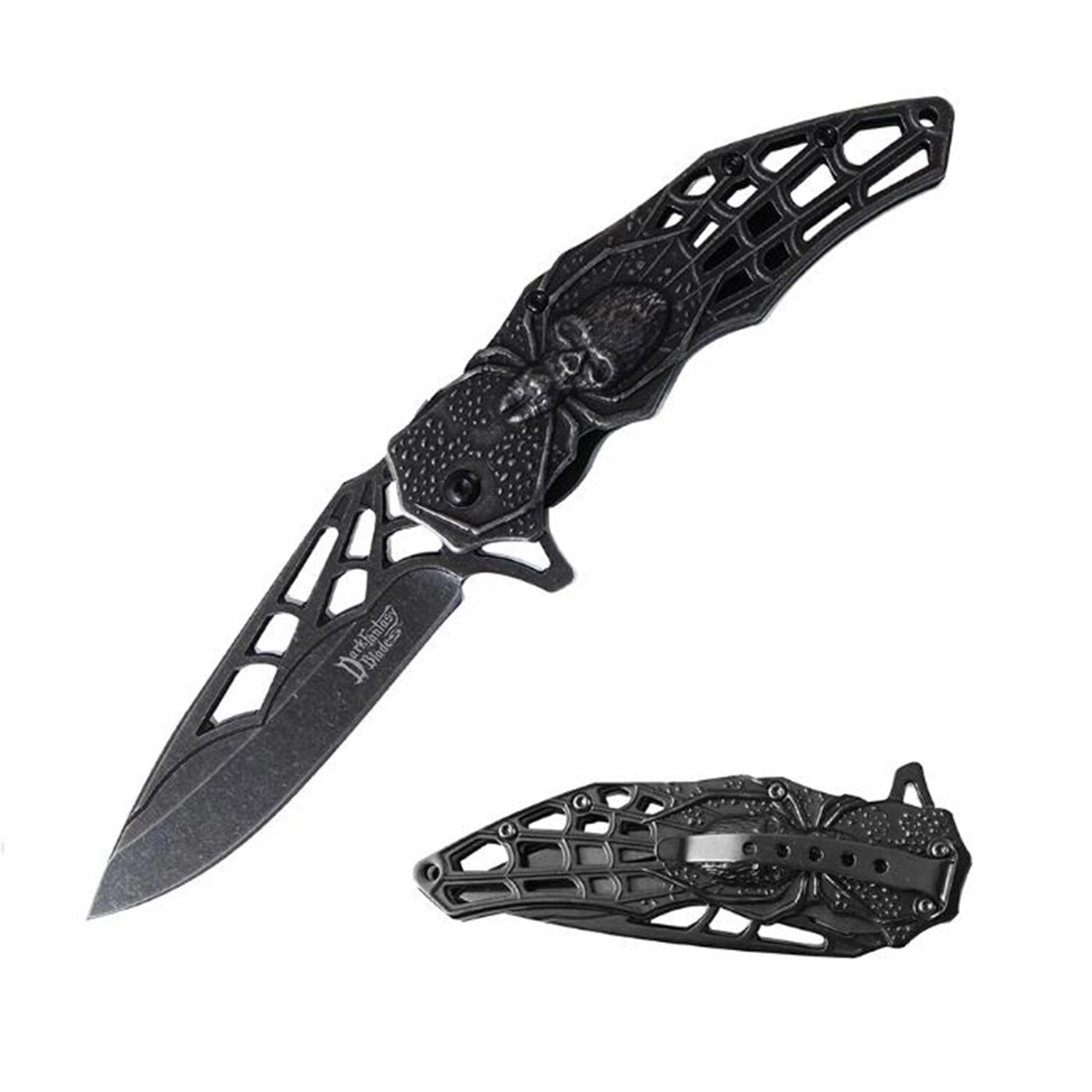 This collection of spring assisted pocket knives is built for fast, reliable one handed use with bold, graphic designs that stand out. Each piece features a tension driven opening mechanism for quick deployment, textured grips for control, and durable stainless steel blades suited for everyday tasks. From tactical profiles to statement finishes, these knives deliver dependable function and solid build quality at an easy entry price.