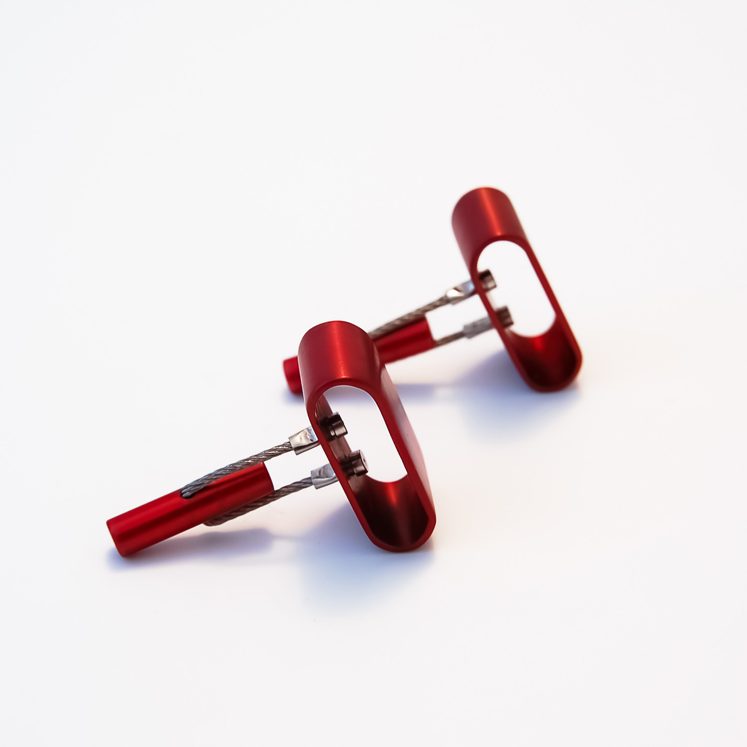 — Anodized aluminum and stainless steel cable cufflinks