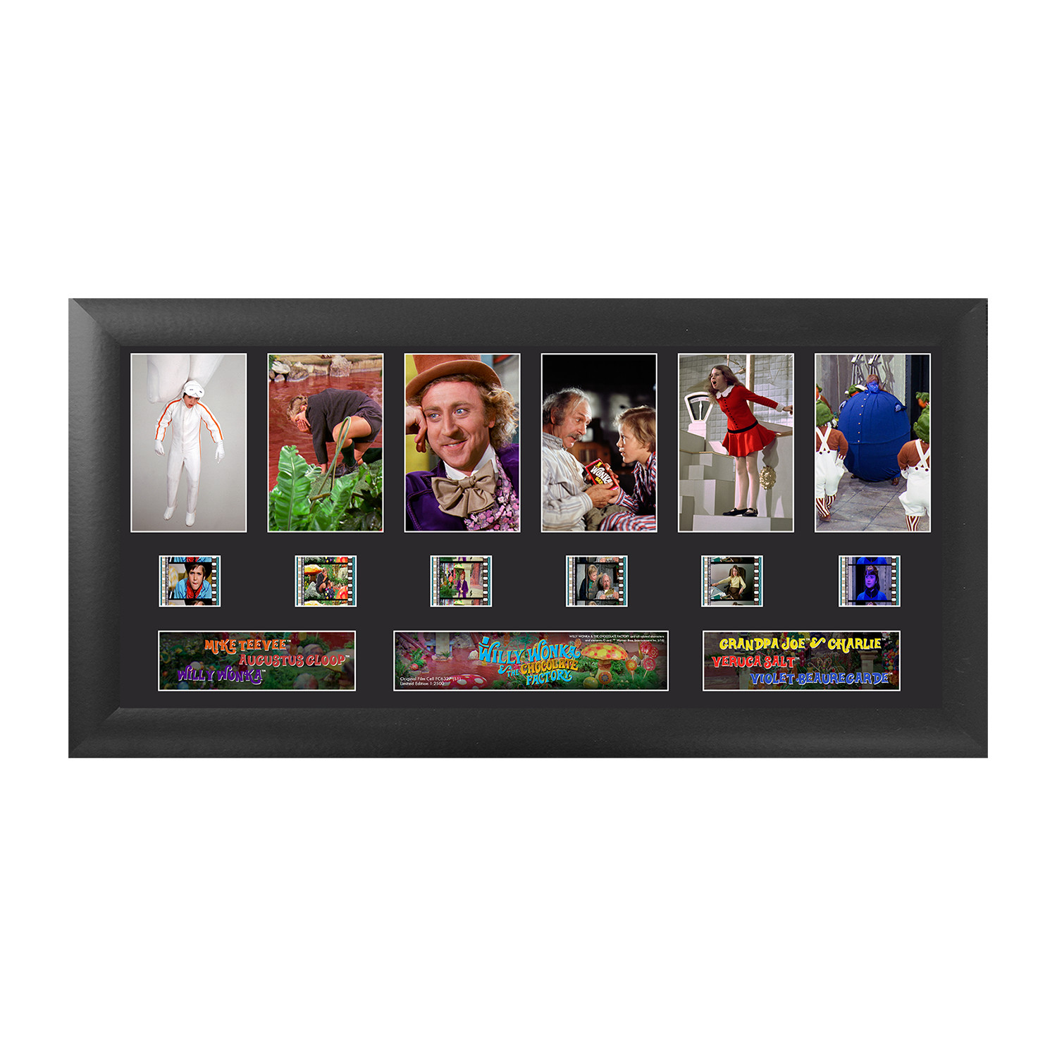 Bring a piece of Willy Wonka and the Chocolate Factory to your home collection with this FilmCells™ Montage. This stunningly cinematic presentation is made with careful attention to detail. Double matted, and placed in a quality frame, this special edition features a customized backlit LED acrylic frame with a 50,000-hour LED lamp life for an even more spectacular presentation. Each piece of film is hand-cut to provide you with the best possible scenes, ensuring that each set is unique and varied. Perfect for collectors of all kinds, this unique presentation boasts images from this iconic movie and 6 clips of real 35mm film.