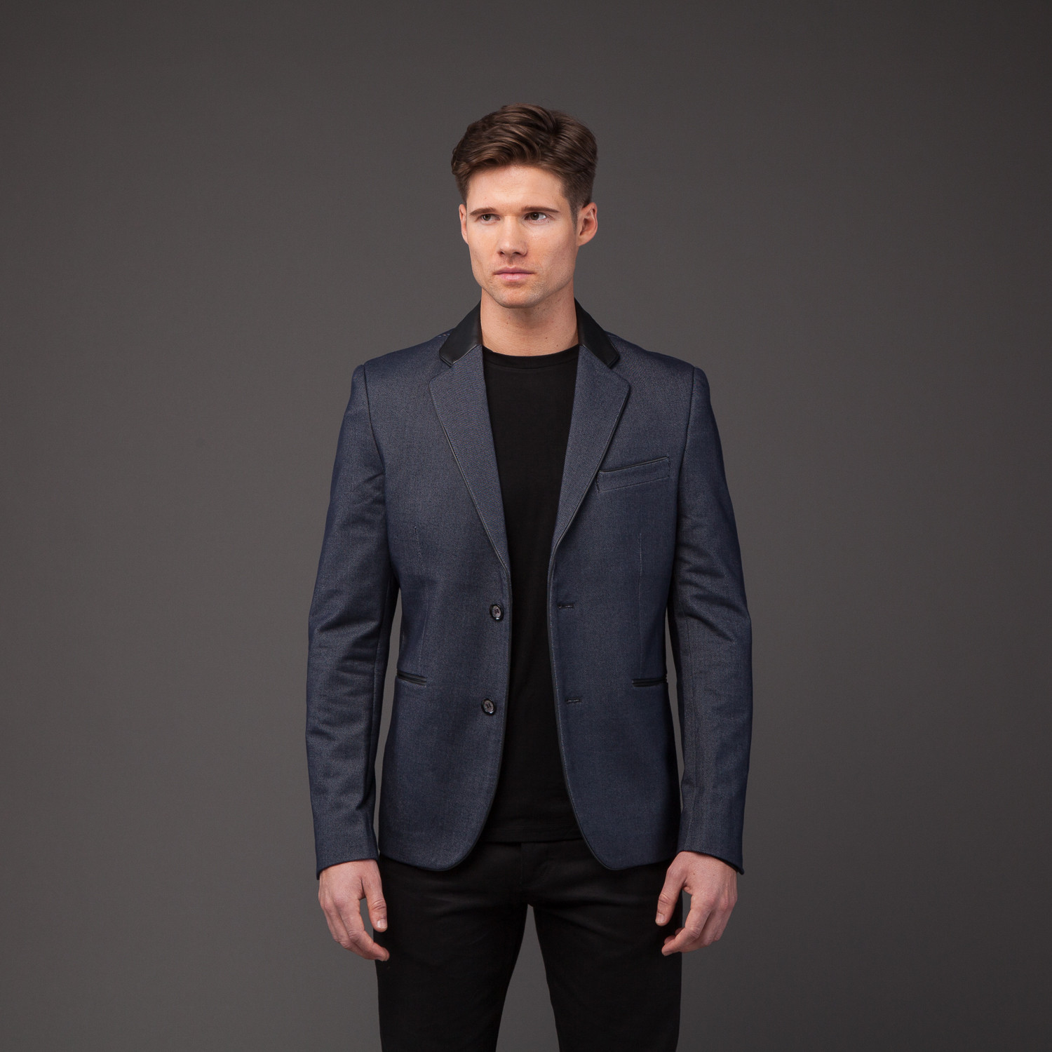 Jacob Holston // Jansen Jersey Blazer with Leather Piping // Navy