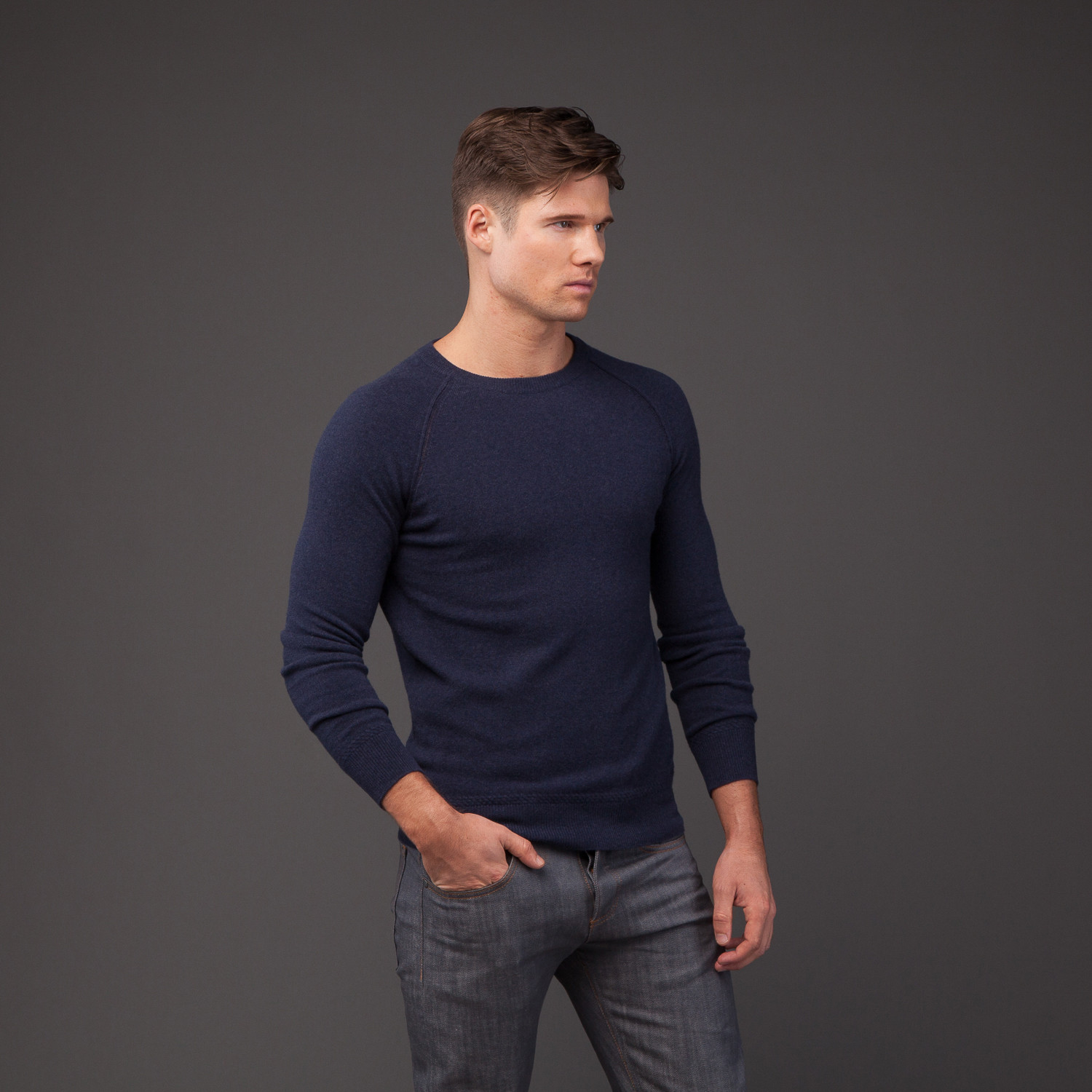 This soft, lightweight Matt Cashmere Crew Neck Sweater is the perfect layering piece for winter. Keep yourself toasty with its luxe cashmere, and stylish with its loose-weave raglan stitch, cable-knit edging at the hem and cuffs, and center seam in the back.