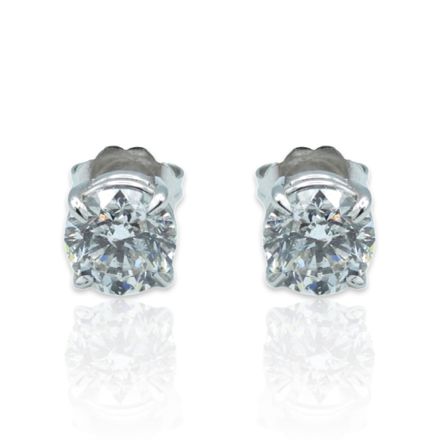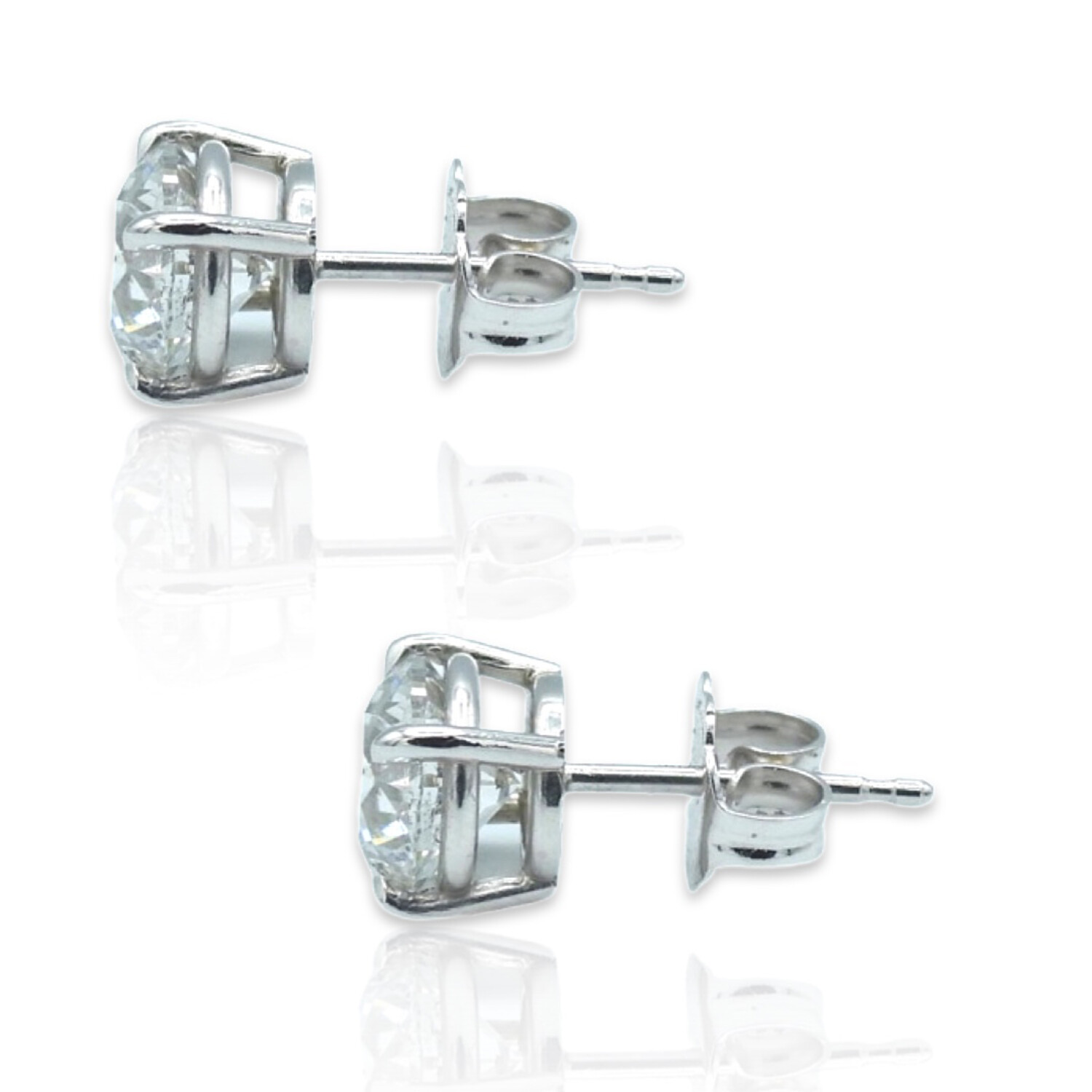 18K White Gold Diamond Stud Earrings I // New