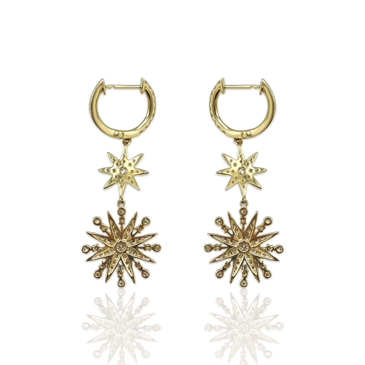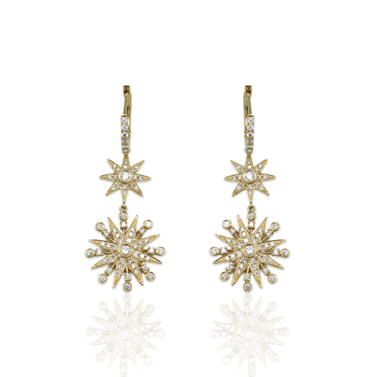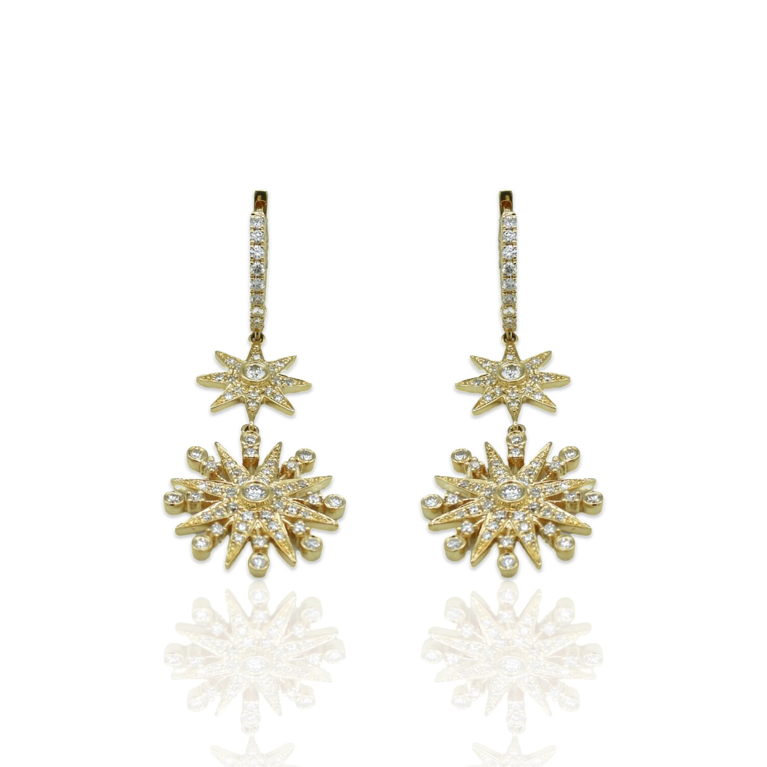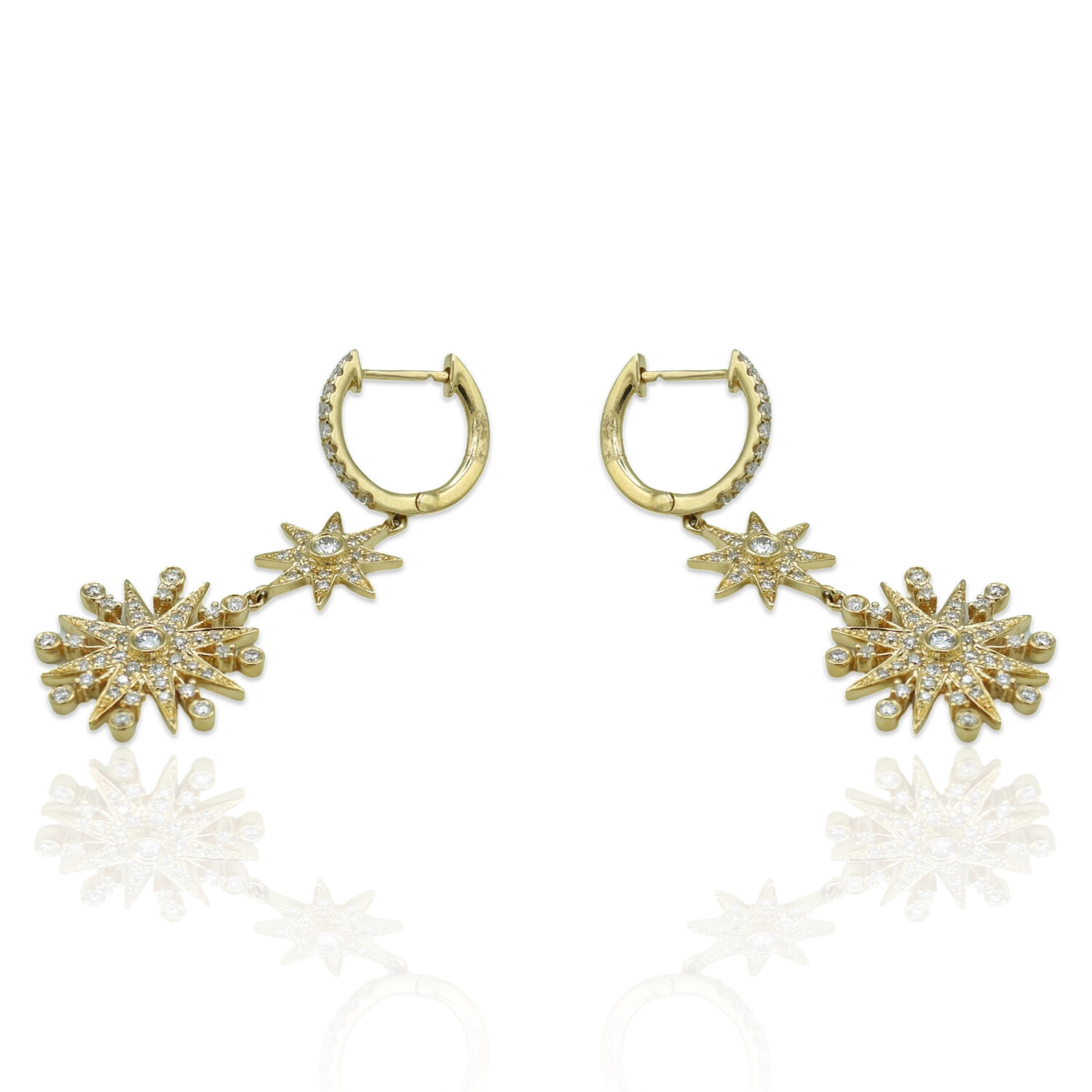 18K Yellow Gold Diamond Drop Earrings // New