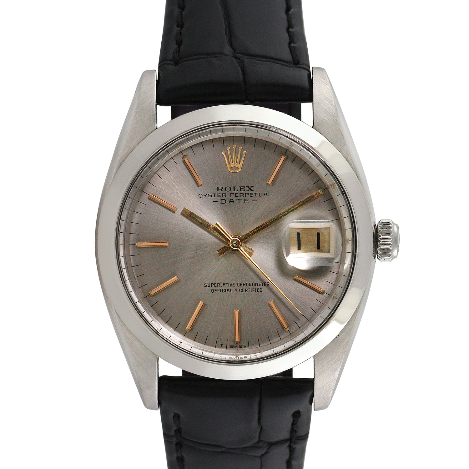 This Rolex Date is an elusive older model from Rolex, based on a series of watches that began production in the late 1950's, featuring a date function. This model is made of stainless steel, as is traditional for the Date series, and also features a Rolex self-winding Automatic movement.