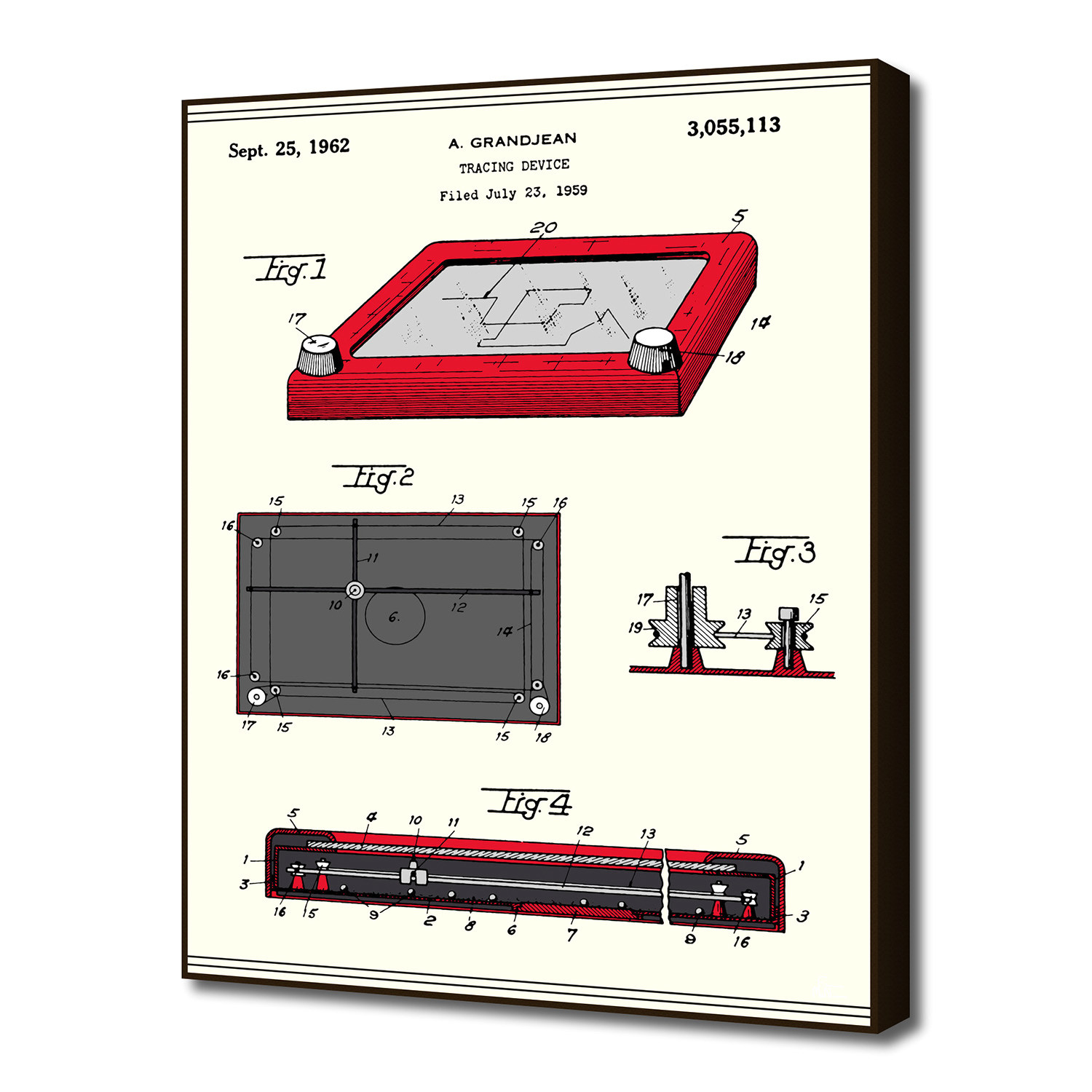 This art block from artist Finlay McNevin boasts a cleverly-rendered patent from the US patent office. Printed on fine art paper and mounted to 3/8" masonite board, this low-profile piece offers a look into the most famous technological triumphs of the last century and beyond.
