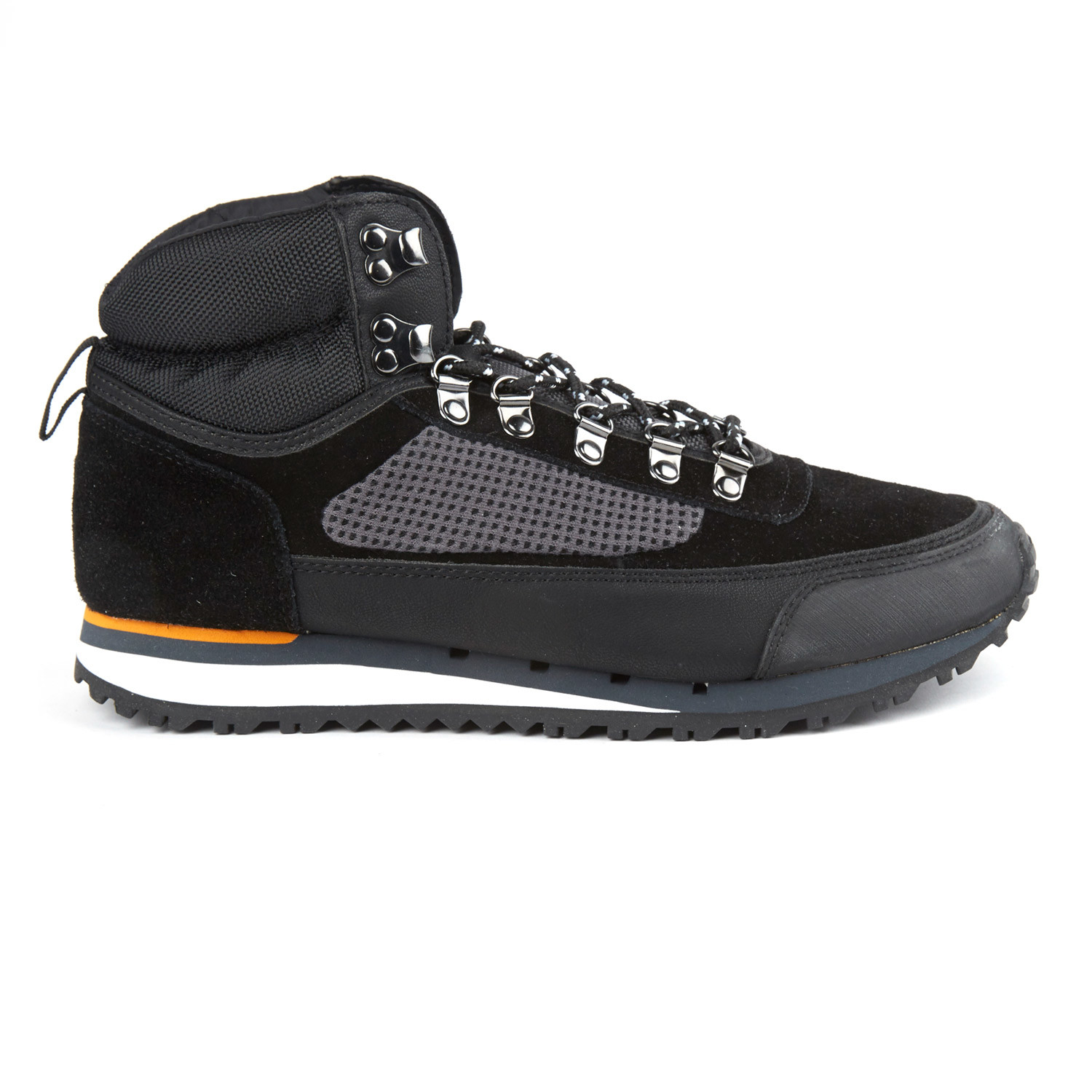 Catering for the urban jungle, Fish ‘N’ Chips’ Bagel fuses classic walking boot and retro running sneaker styling to serve up a very fashion-forward men’s lace-up boot. It boasts unique outdoorsy details like metal lace hooks and eyelets and thick padded cuff for added warmth and stability. Inside, a quilted nylon lining and spongy rubber sports sole unit provides unbeatable cushion and grip.