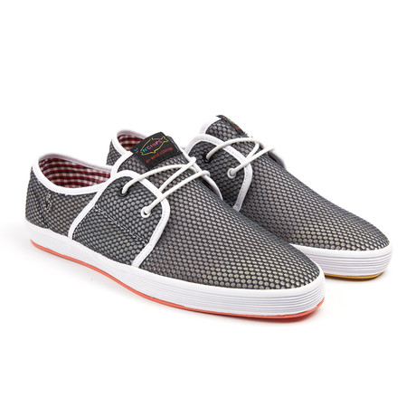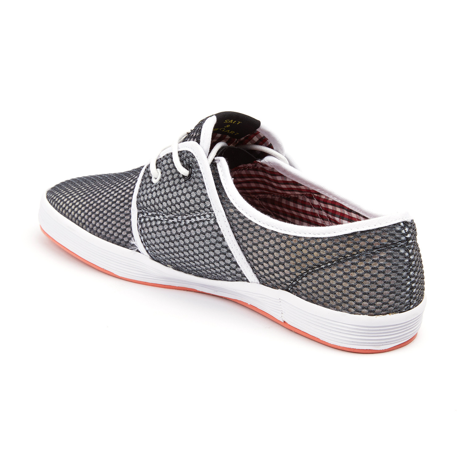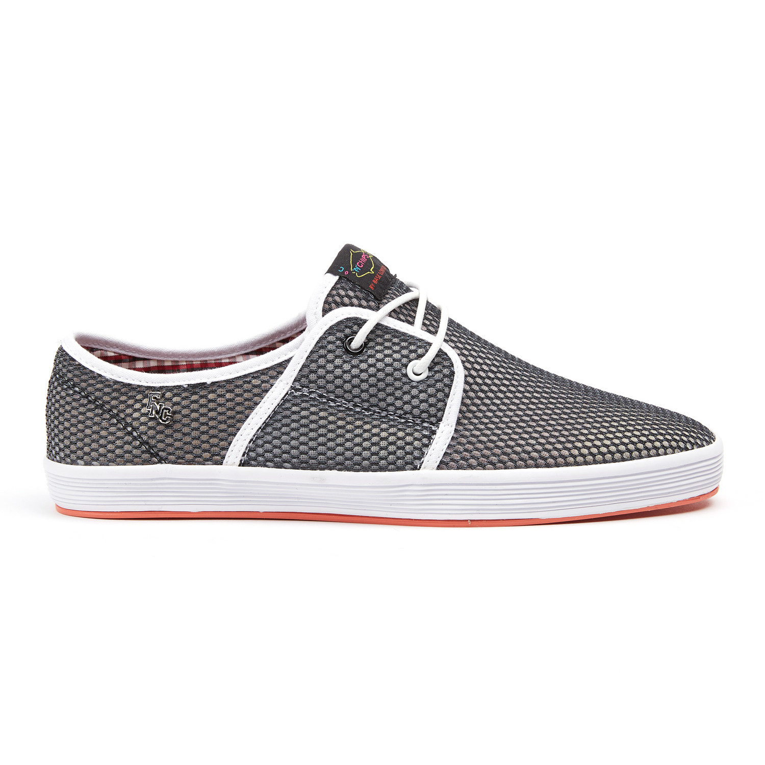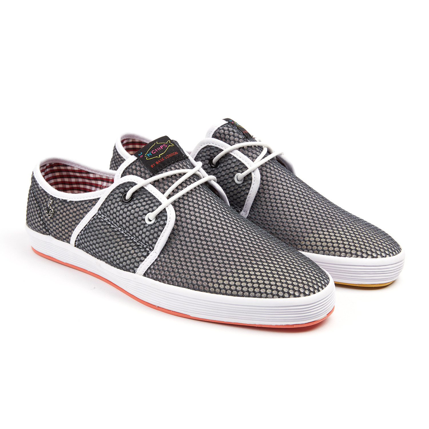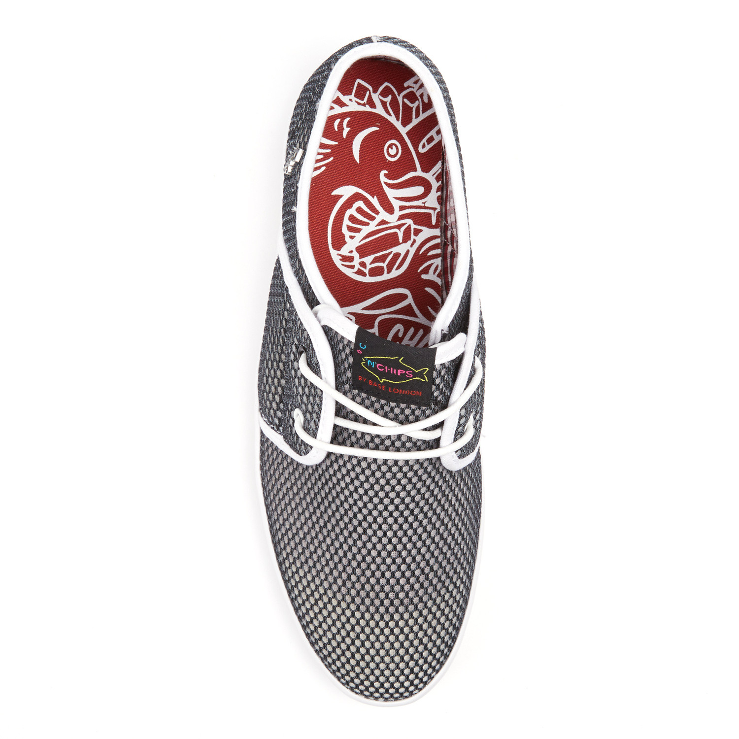 Fish ‘N’ Chips signature casual men’s shoe, the Spam 2 Sneaker has been updated for the season with a woven finish on the uppers. A two-hole lace fastening provides a secure and comfortable fit, while a Fish ‘N’ Chips branding label on the tongue reveals the maker’s mark.
