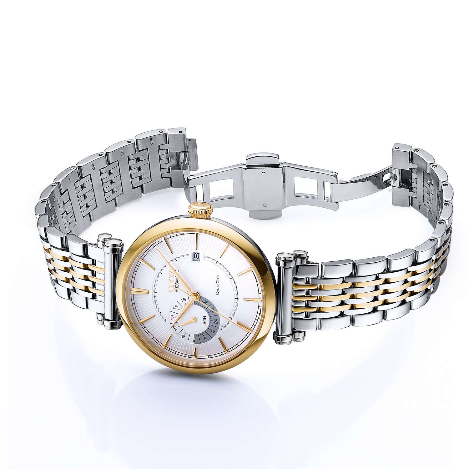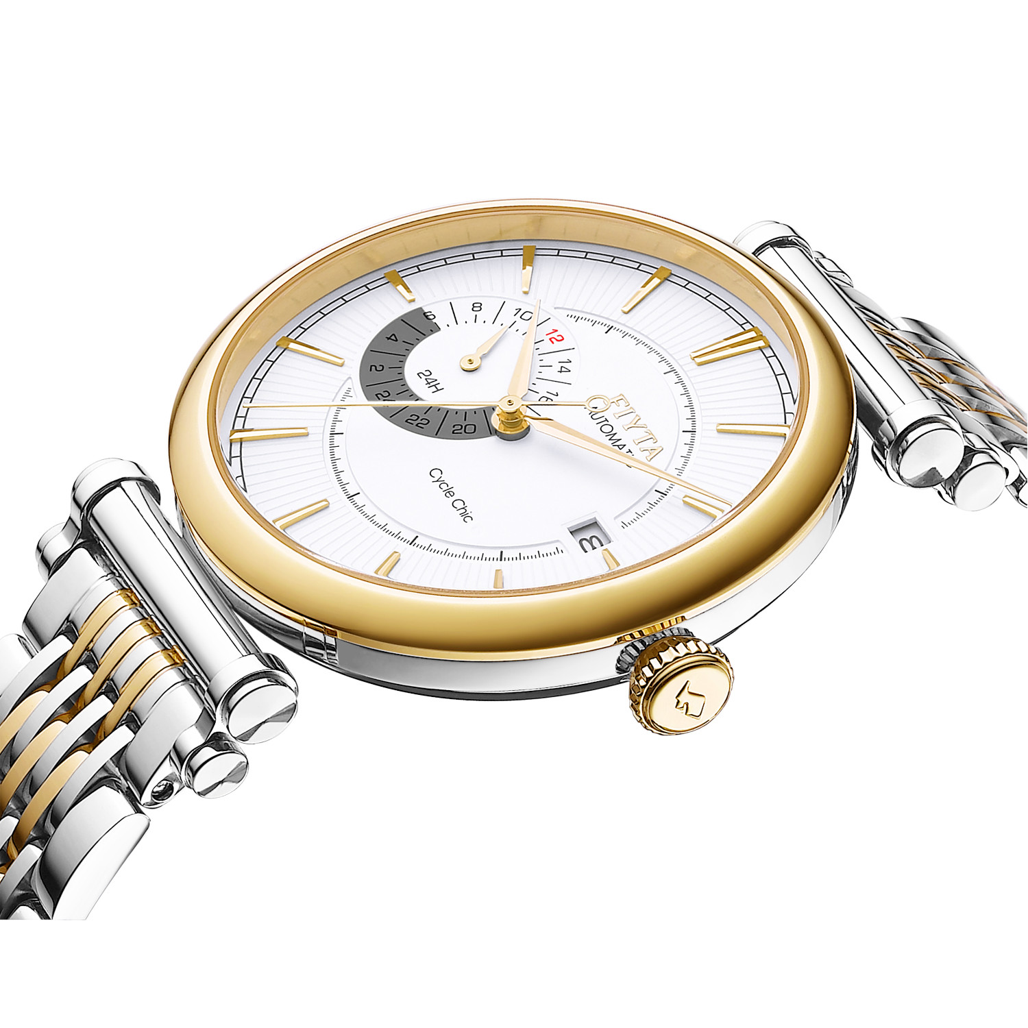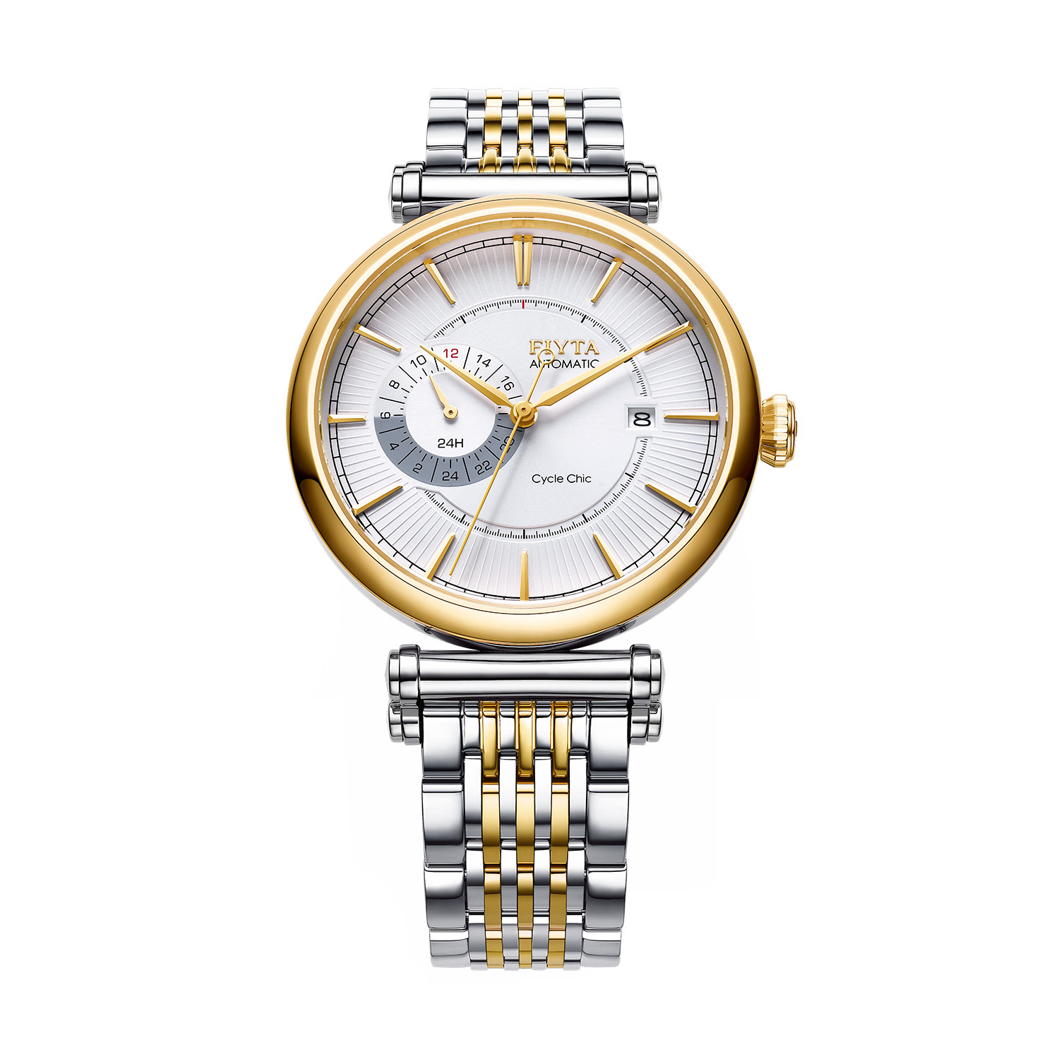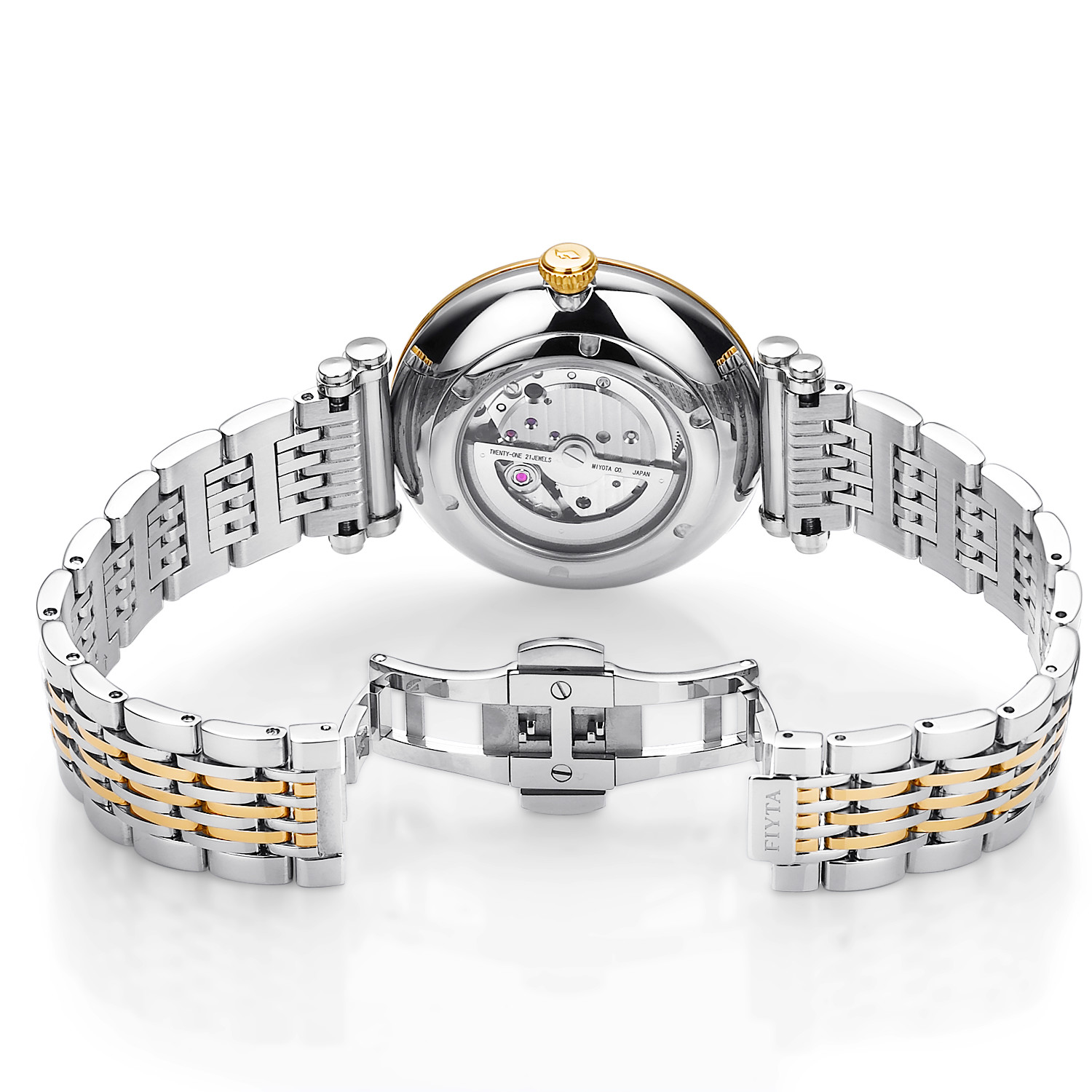You'll always be in style with the Fiyta IN Collection Automatic. This stainless steel and sapphire timepiece is built to last, with a leather strap that helps it fit in with your other accessories. Its consummate craftsmanship can be spotted even from across the room.