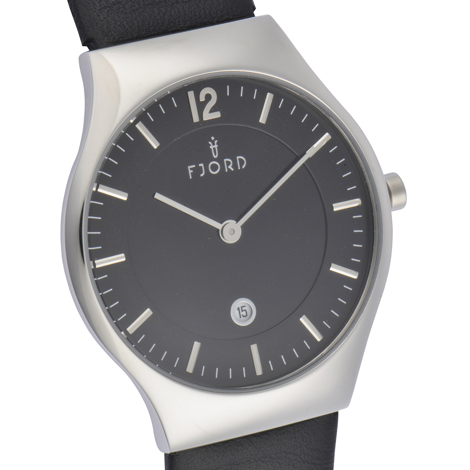 The Olle men's watch embodies simple Scandinavian design with smooth contours and functional details. A clean dial with date display and uncluttered hour markers provide a sleek appearance paired with a genuine leather strap.