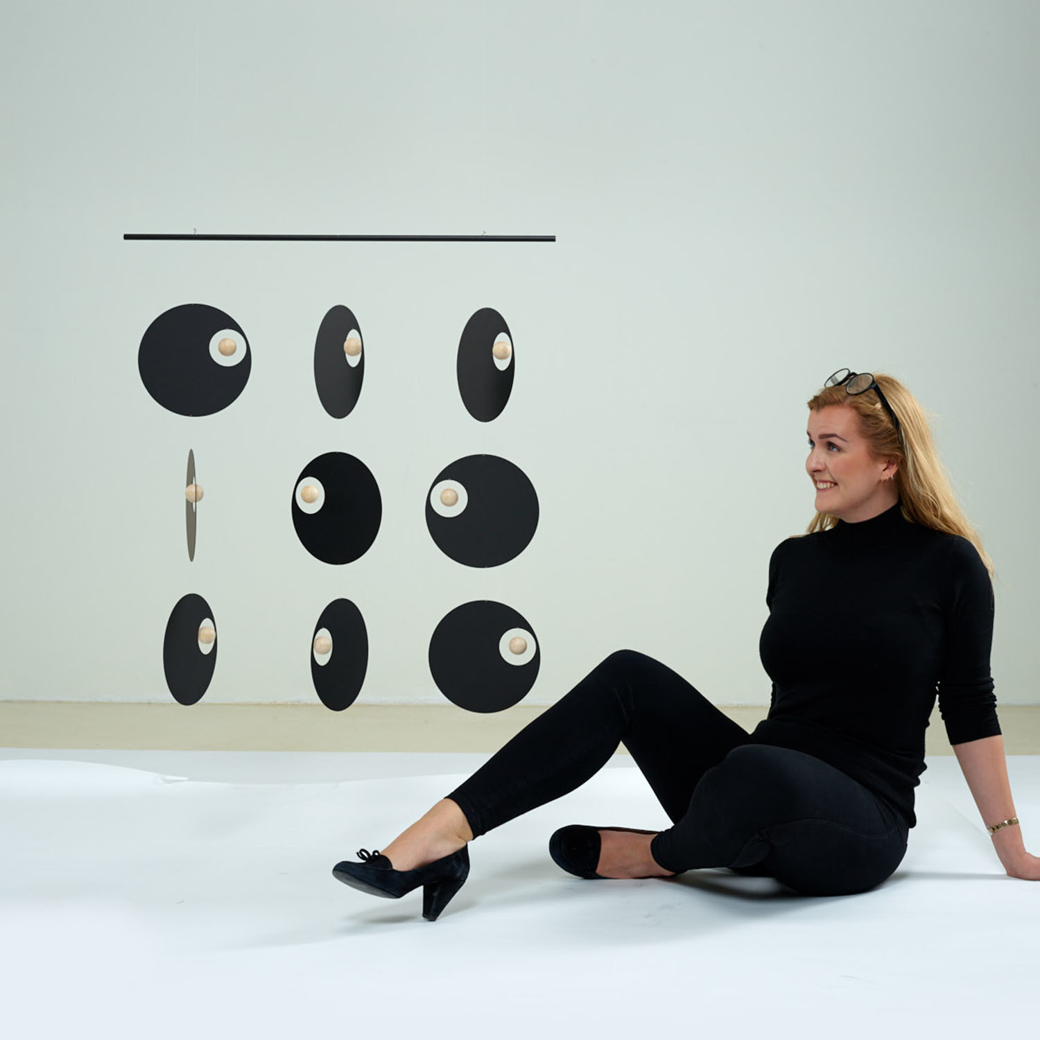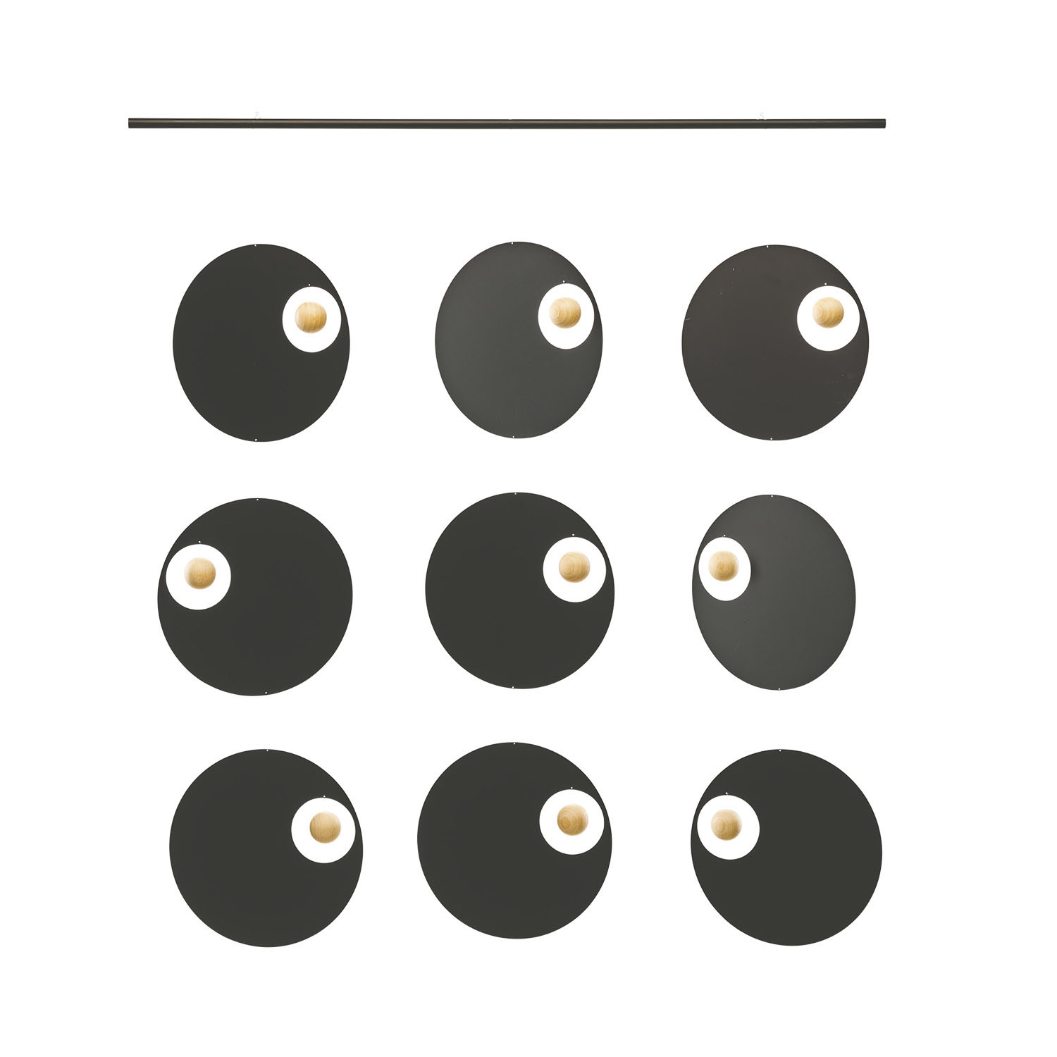 Squareroot 9 was designed in 1972 by the founder of Flensted Mobiles, Christian Flensted. This mobile can be compared to a painting—the main difference is that the mobile hangs 13" off the wall and that this piece of art moves and casts the most wonderful shadows.