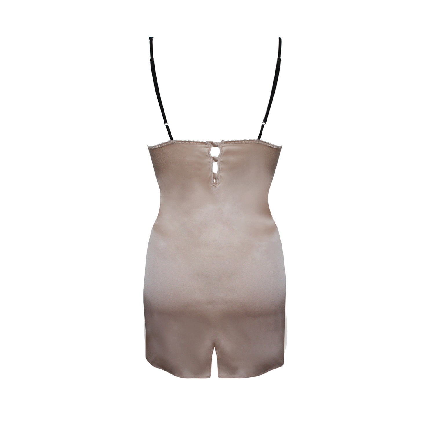The Seduction babydoll slip is the must-have luxury item. You'll adore the sexy silhouette this babydoll gives with a flattering contoured body and nude silk satin. The Italian tulle nearly disappears on the skin, and the over bust seam construction of the cup allows capacity for various bust sizes.
