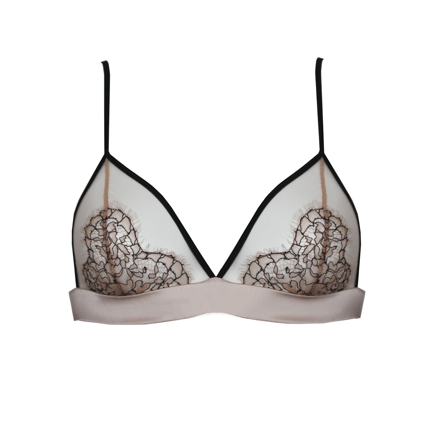 The Seduction silk satin nude boudoir bra is sensual and elegant. This show-stopping piece features french eyelash lace, and an over bust seam that allows various bust sizes to fit into this unforgettable bra. The wide elastic underband has been carefully encased in a silk band to create an exquisite finish, with lavish silk covered buttons for undoing at the back. The fine silk straps have also been created ebony silk satin for the ultimate nighttime look.