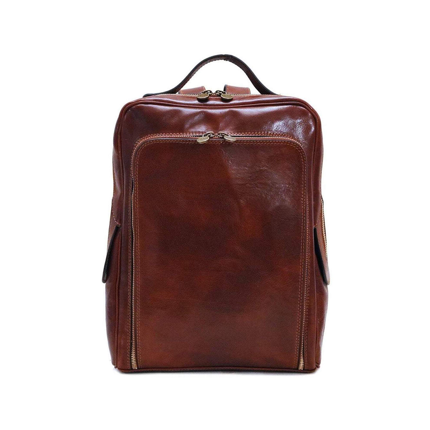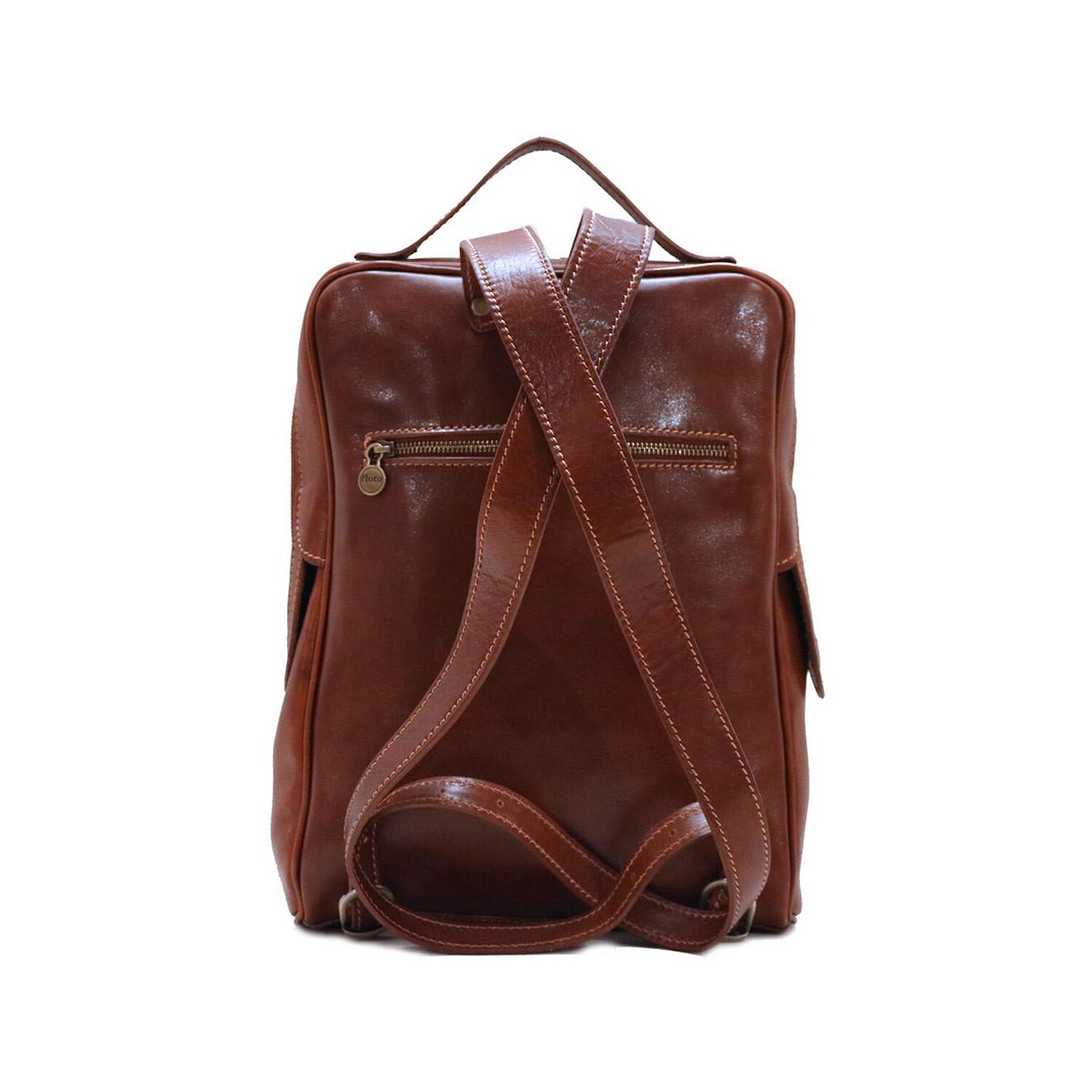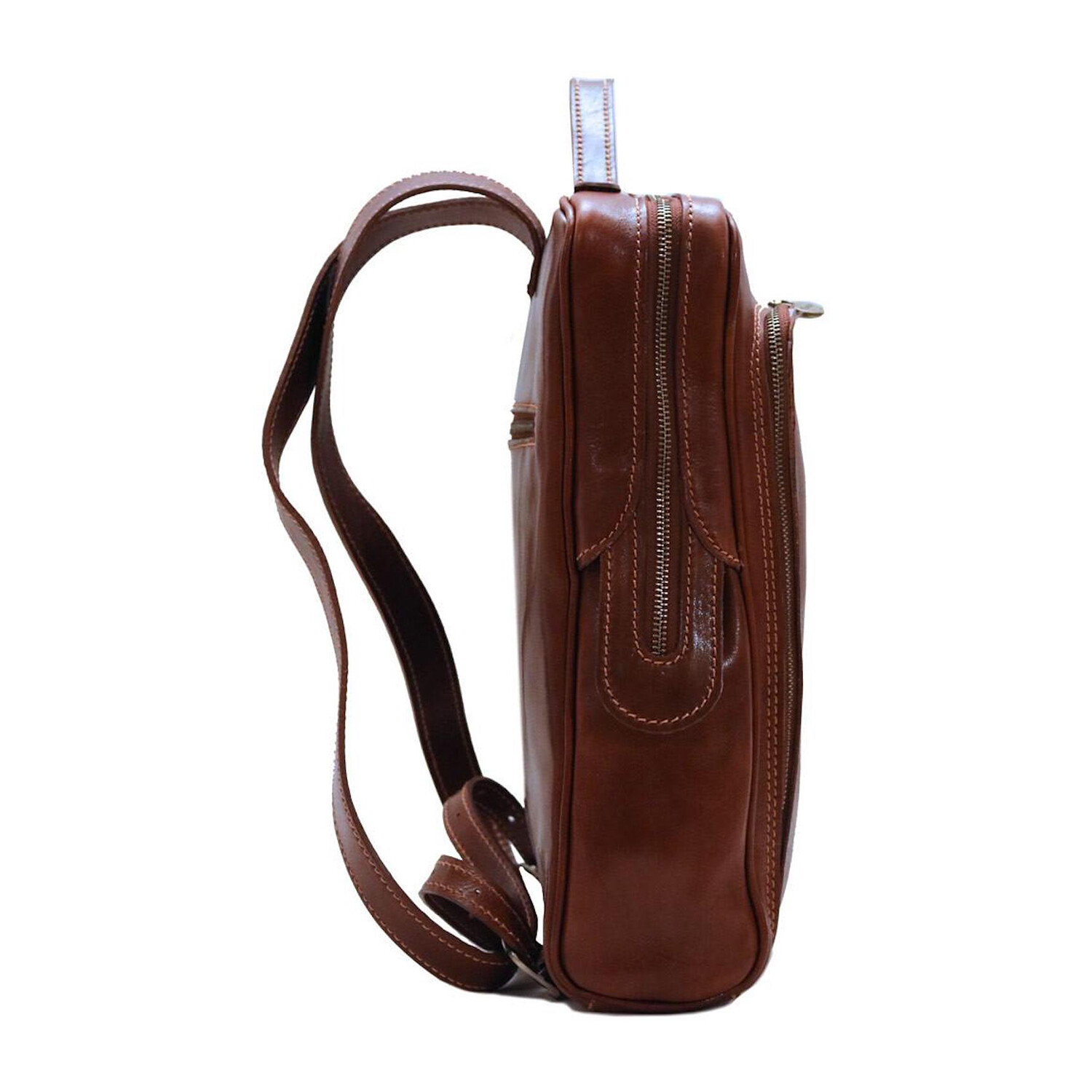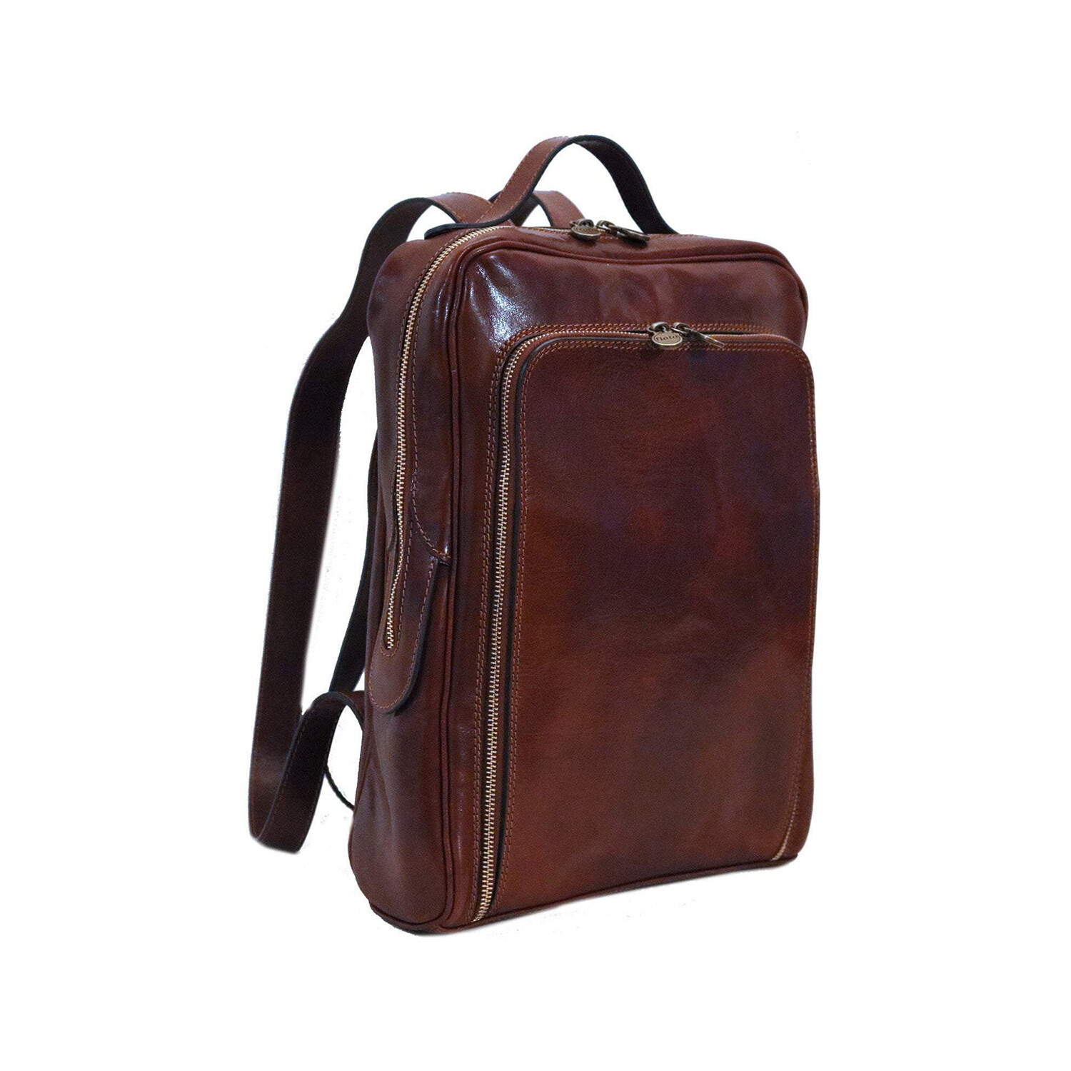 The Milano Pack is a lightweight leather backpack made with full grain leather and finished with brass hardware. The calfskin leather was vegetable tanned in Tuscany to create rich color tones and a semi-gloss finish that helps prevent stains. Over time this leather backpack will soften and develop a beautiful patina. The 8 oz cotton duck canvas lining is made in South Carolina and very durable. This combination of vegetable tanned leather, Italian craftsmanship, and U.S. made canvas lining make every bag a beautiful, durable, and, lightweight work of art.
