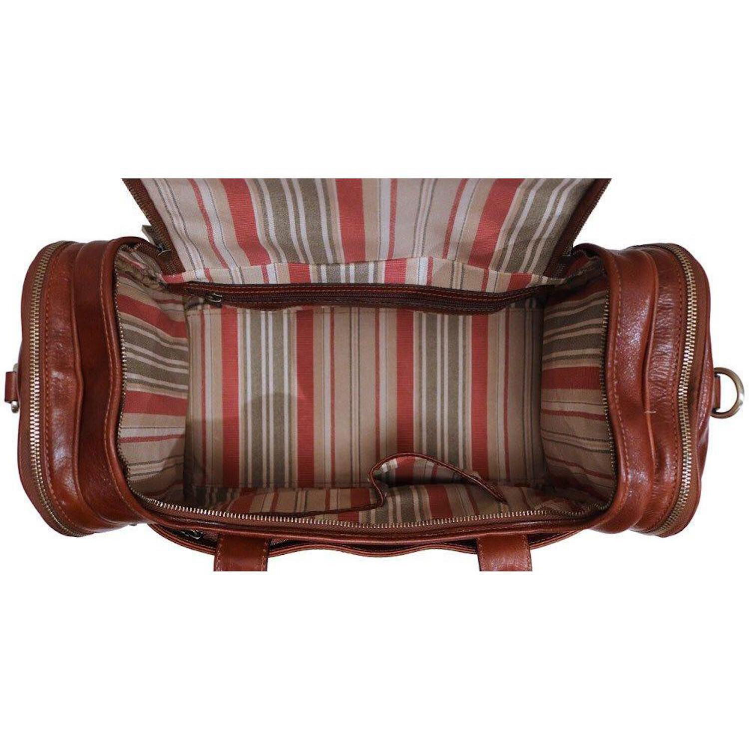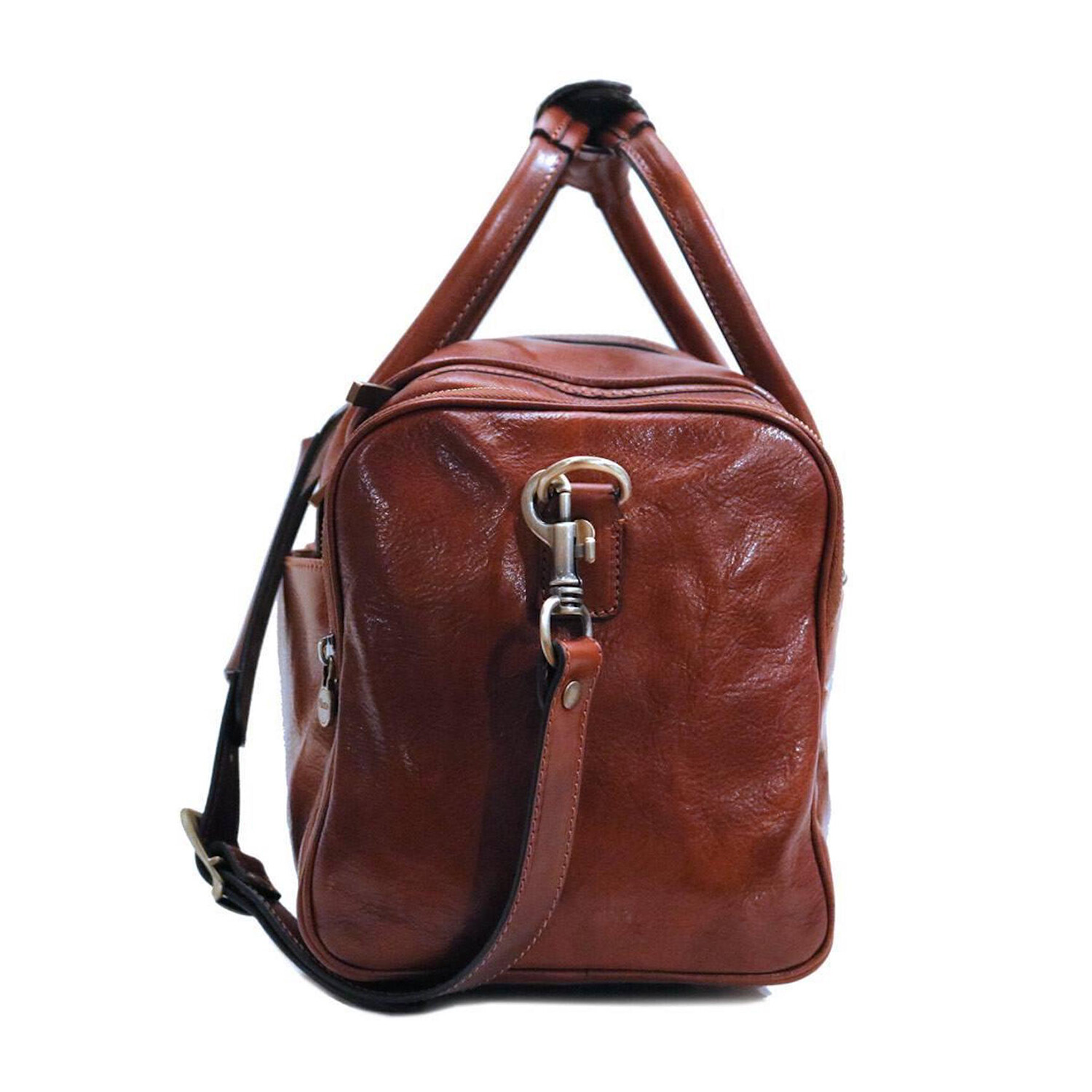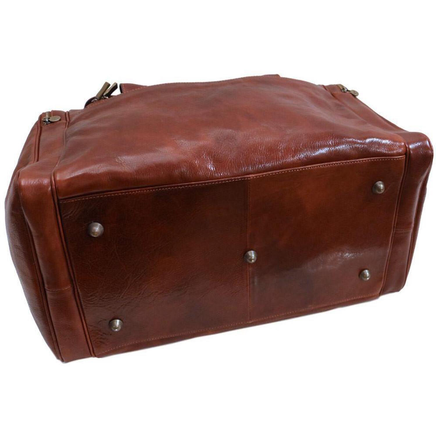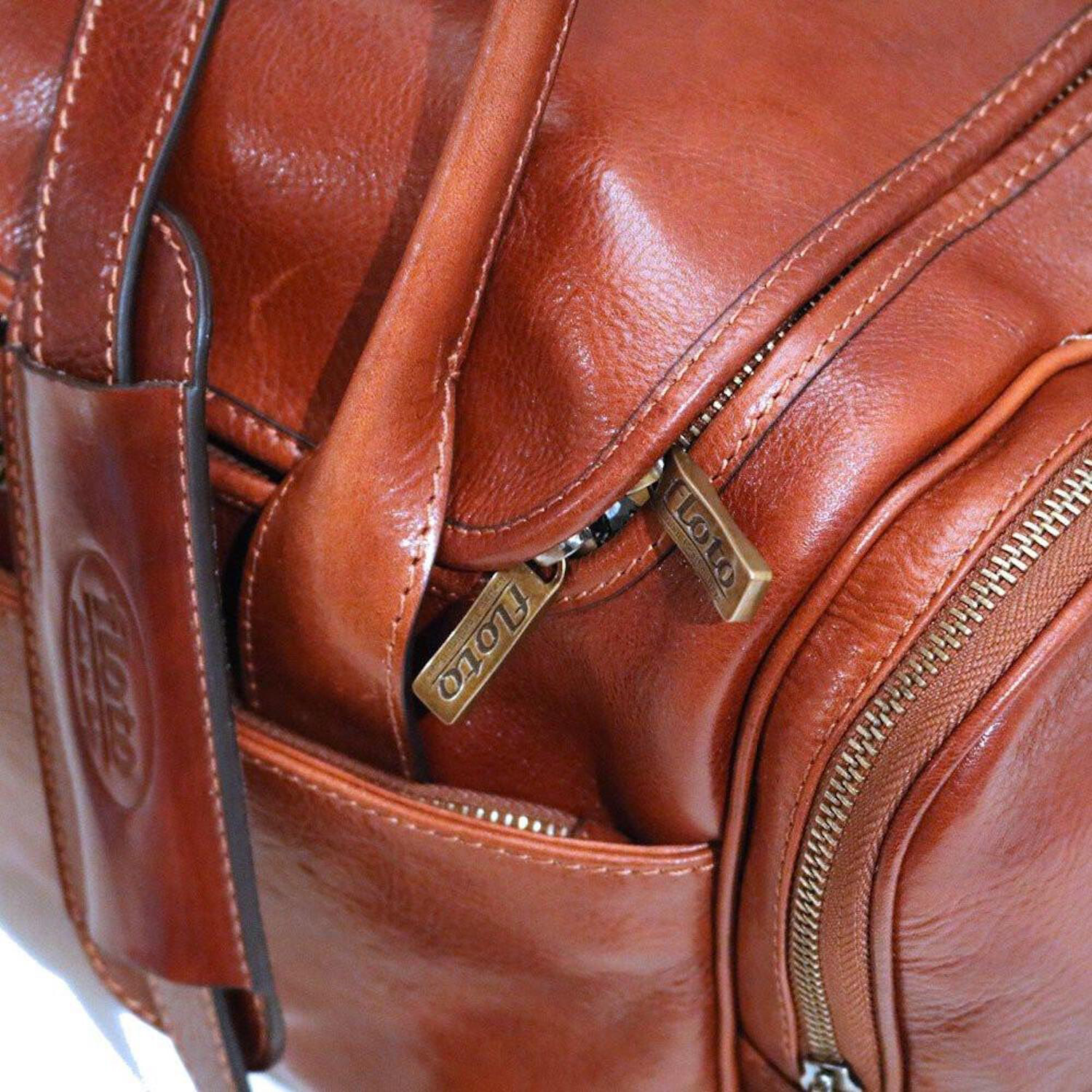 The Floto Collection Cargo Duffle Bag is crafted from full grain vegetable tanned calfskin leather with smooth wax finish edge paint and canvas lining. The calfskin was hand tanned Etruscan style in the heart of Tuscany to develop a silky touch. Only vegetable extracts and natural oils were used to create rich, vibrant color and a soft, semi-gloss finish. Over time, this leather bag will soften and develop a beautiful patina.