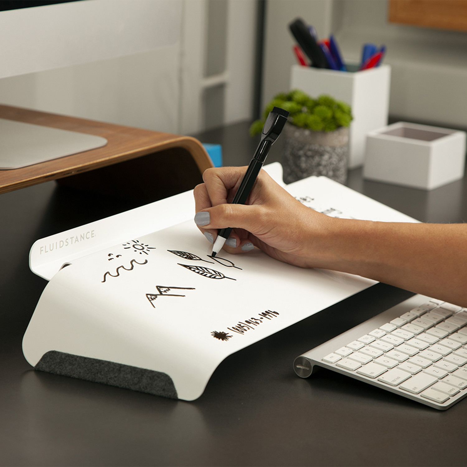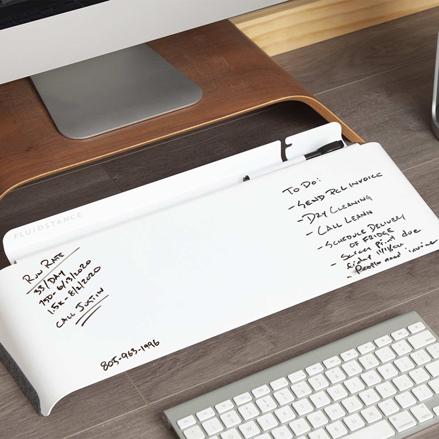 Ditch disposable paper notes and streamline your work experience while reducing your environmental impact with FluidStance Slope—your personal desktop whiteboard. Inspired by an open ski run, Slope is the perfect dry-erase surface for your desk that lets you jot down notes, reminders, to do lists, or just plain doodle without using paper or wasteful sticky-notes. Slope's modern and ergonomic design offers a gentle angle for writing and a premium dry-erase surface you can reuse over and over.