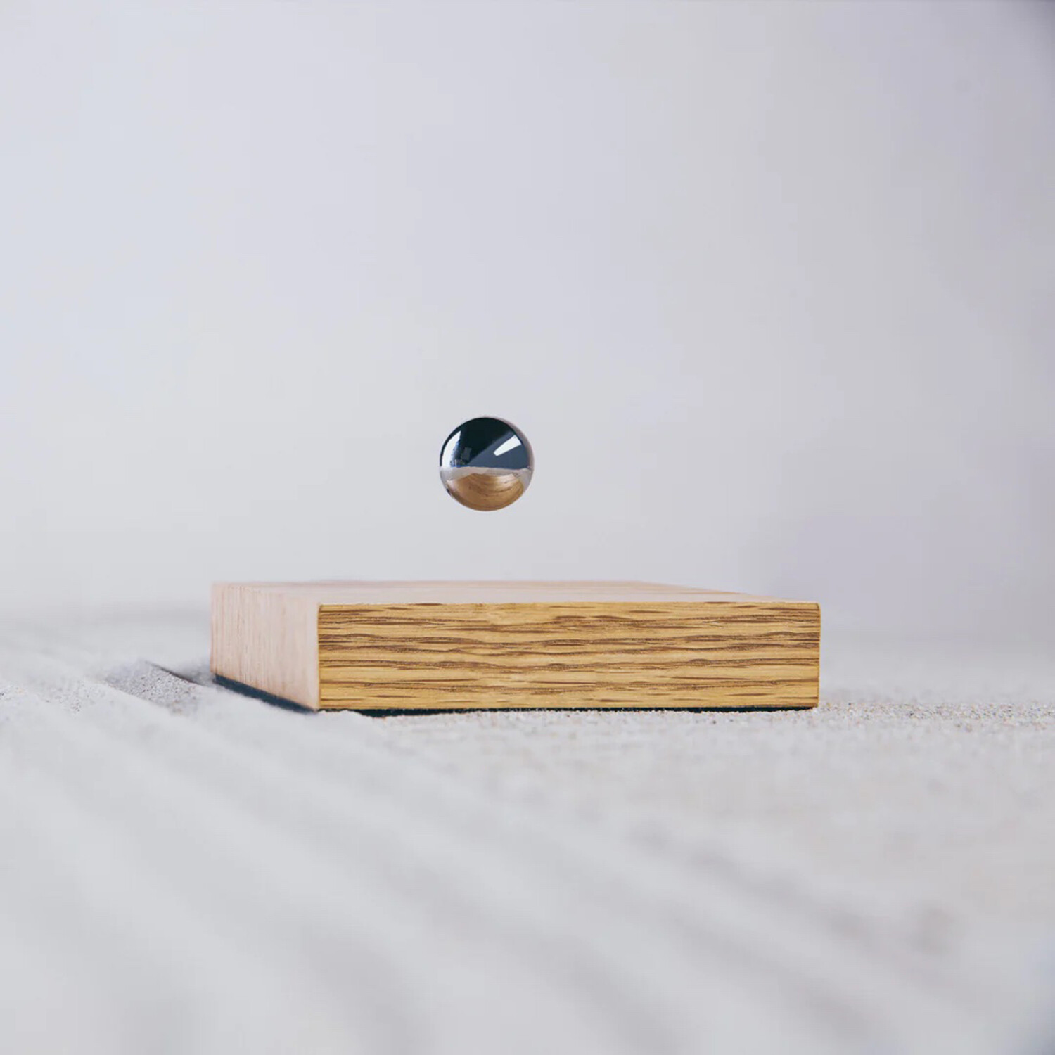 Buda Ball combines clean aesthetics with thoughtful functionality to make you feel inspired and grounded throughout the day. Using technology inspired by Nikola Tesla, the sphere can float above the base positioned vertically or horizontally.
