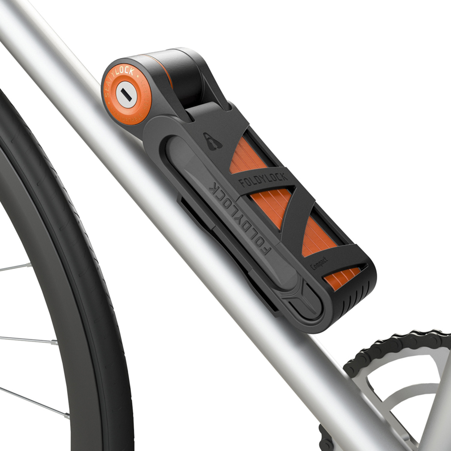 Smaller and lighter than the original, the Foldylock Compact is an impenetrably strong bike lock that conveniently attaches directly to your bike. It's made of solid, hardened-steel with drill protected rivets that make bolt-cutters a non-issue. Indestructible and compact, it's designed to be there when you need it, and unnoticeable when you don't.