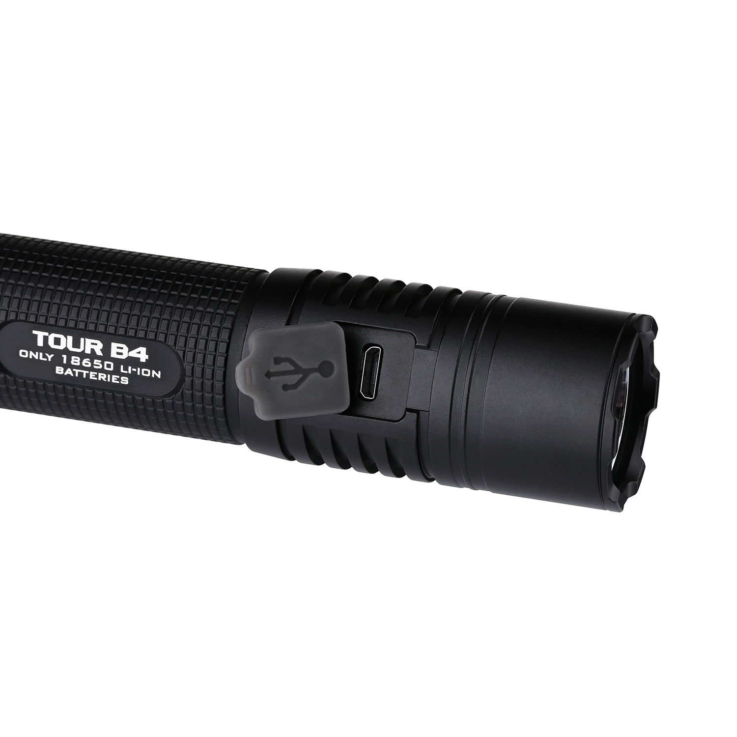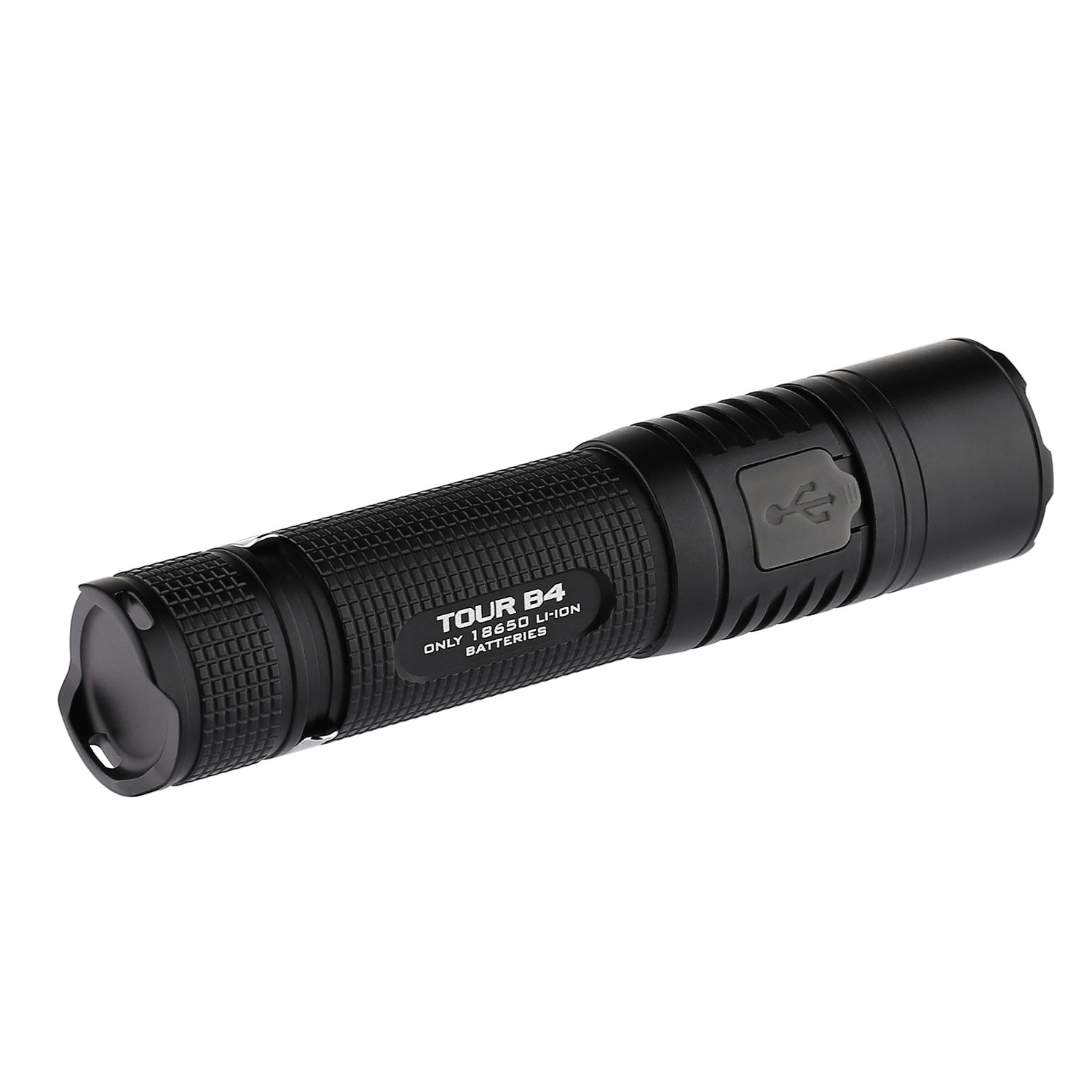 The B4 Flashlight is a super-bright flashlight and a powerbank all in one. The USB recharging powers up the light, but also stores emergency battery life to provide extra juice to your other devices if you need it.
