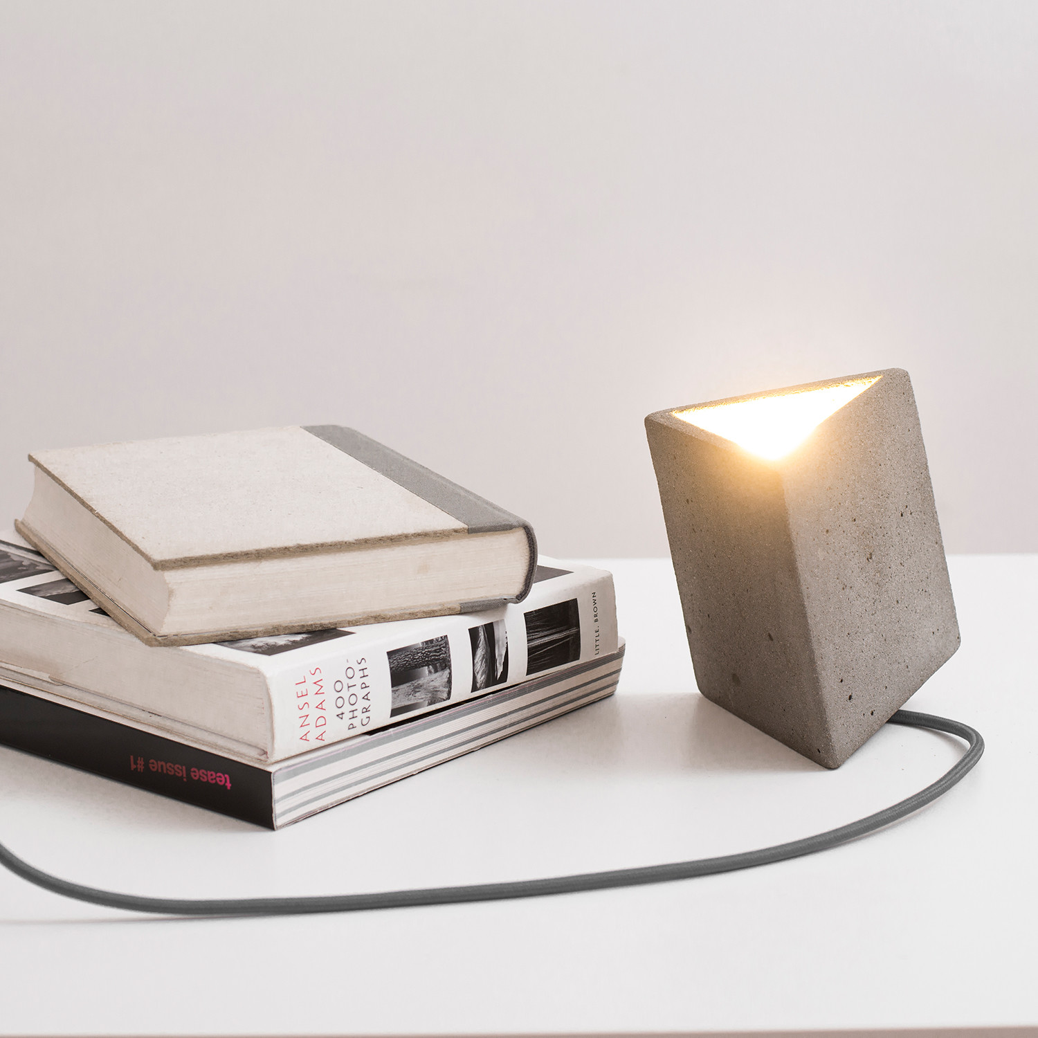 Fons&Origo do not regard the creation of an object as a linear process. Continuous exploration of the variety of techniques culminates in a unique final product, like this Protos Triangle Concrete Table Lamp. The exploration journey begins with an idea, which the creators further study and develop through series of drawings and prototypes. Only after they have emphasized the virtues and removed the drawbacks, the idea takes form and they start to experiment with materials. Mixing of concrete and plaster with pigments, painting, cutting, breaking, sealing until the perfect combinations are obtained and the products can receive the Fons&Origo seal. Bearing the marks of this long creative journey, the product – a piece of art, love and passion, is finally ready to enter and be part of your world.