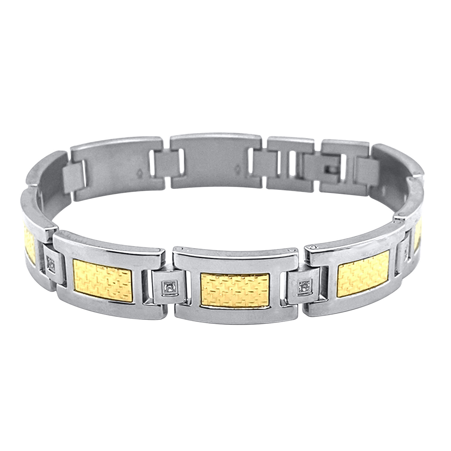 0.15Ctw Stainless Steel Bracelet With 14K Gold Foil