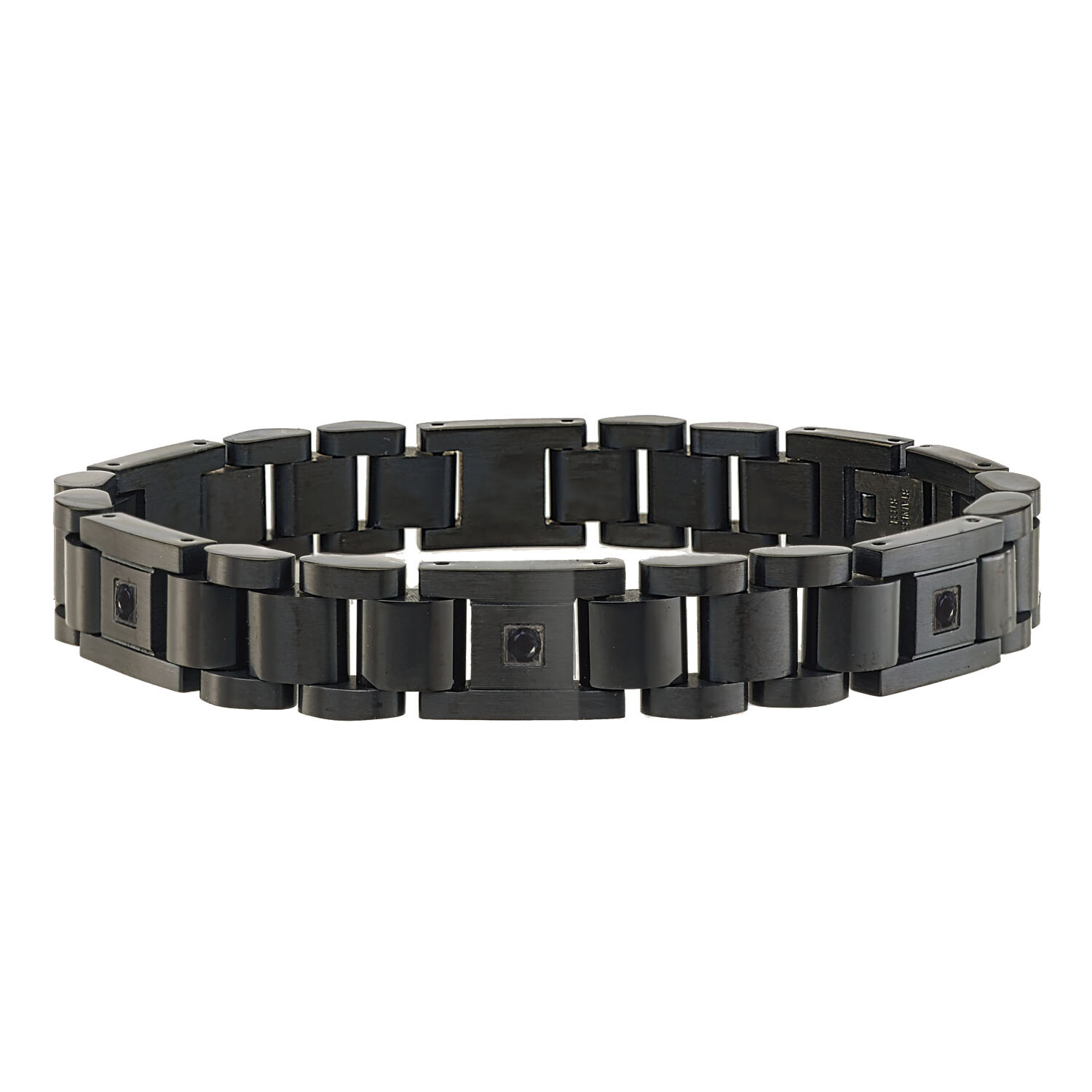 1/8Ctw Black Treated Diamond Stainless Steel Bracelet With Black Iron Plating