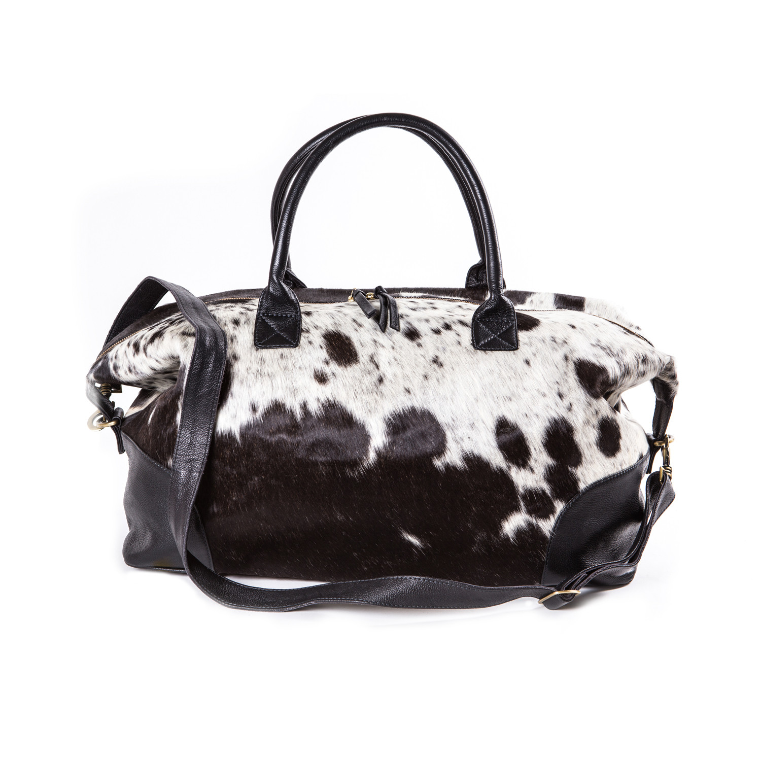 Even the most spontaneous travelers need the perfect weekender — and it's finally arrived. This chic cowhide leather bag is ready to jet at a moment's notice, with a unique natural exterior that's one-of-a-kind. It's built to last, with supple cotton lining, two inside pockets, one zippered pocket and a removable shoulder strap. Pack your bag and take to the road with this rugged weekender that you won't want to unpack ever again.