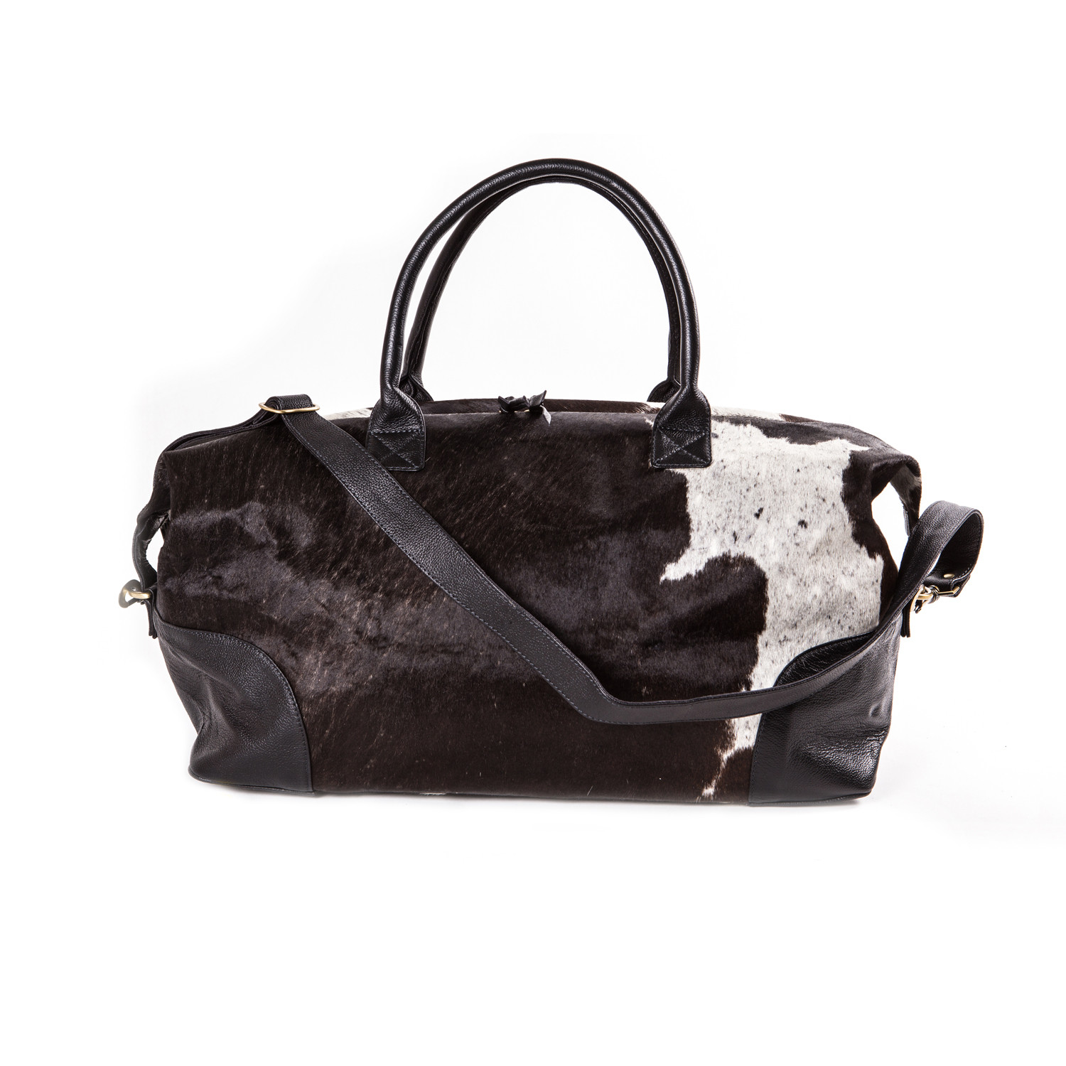 Even the most spontaneous travelers need the perfect weekender and it has arrived. This chic cowhide leather bag is ready to jet at a moment's notice with a unique natural exterior that's one of a kind. It's built to last, with supple cotton lining, two inside pockets, one zippered pocket and a removable shoulder strap. Pack your bag and take to the road with this rugged weekender that you won't want to unpack ever again.