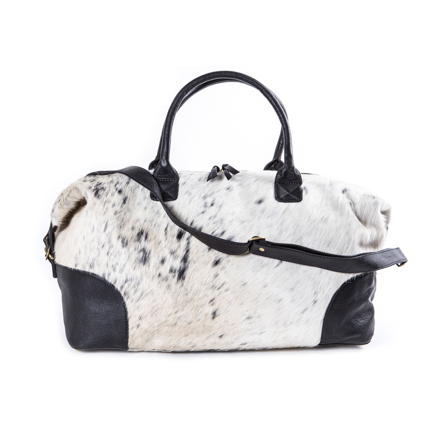 Even the most spontaneous travelers need the perfect weekender — and it's finally arrived. This chic cowhide leather bag is ready to jet at a moment's notice, with a unique natural exterior that's one-of-a-kind. It's built to last, with supple cotton lining, two inside pockets, one zippered pocket and a removable shoulder strap. Pack your bag and take to the road with this rugged weekender that you won't want to unpack ever again.