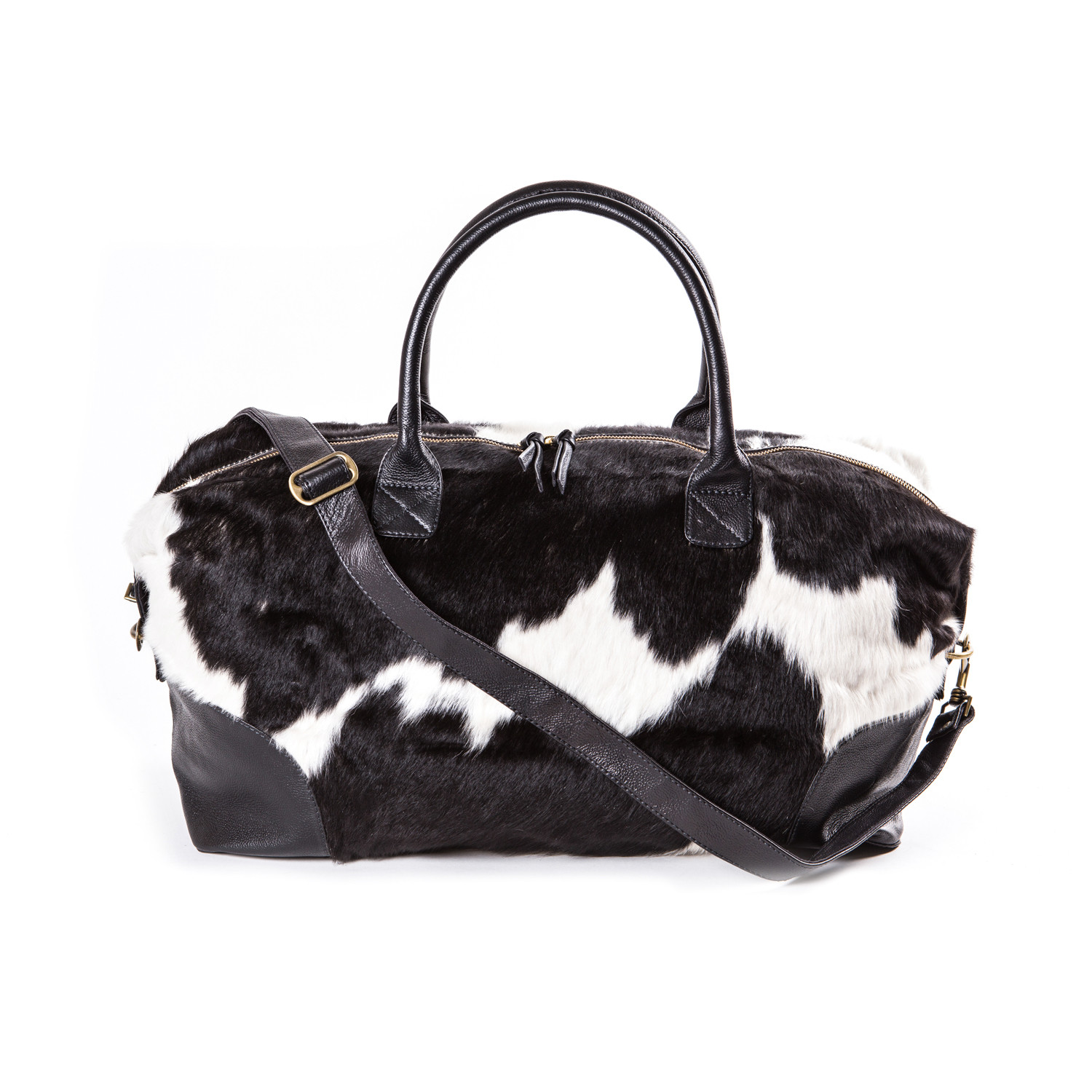 Even the most spontaneous travelers need the perfect weekender and it has arrived. This chic cowhide leather bag is ready to jet at a moment's notice with a unique natural exterior that's one of a kind. It's built to last, with supple cotton lining, two inside pockets, one zippered pocket and a removable shoulder strap. Pack your bag and take to the road with this rugged weekender that you won't want to unpack ever again.