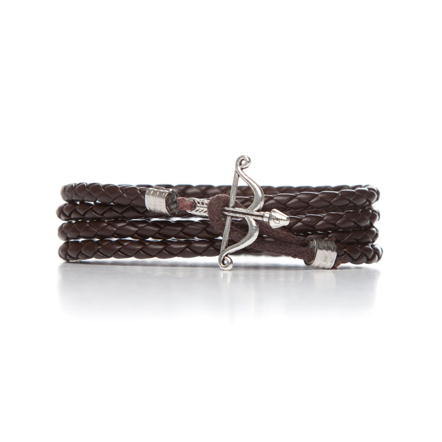 The Lazio Marco takes an adventurous style and adds extra depth and character. A quadruple wraparound leather bracelet bracelet, its thick band is adorned with a bow and arrow metal piece.