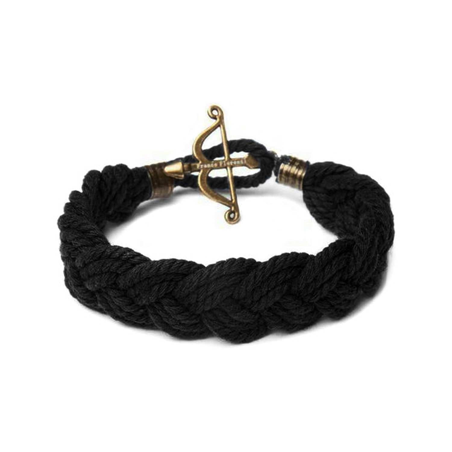 The Monza Nero takes an adventurous style and adds extra depth and character. A braided cotton cord bracelet, its twisted band is adorned with a bow and arrow metal piece.