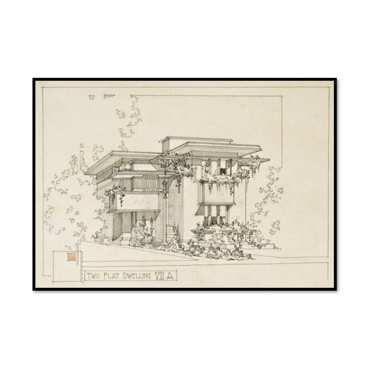 Gorgeous and ready-to-hang, this quintessential piece from the collections of Frank Lloyd Wright perfectly showcases his unique, post-modern style, and will make an elegant and historical addition to you collection, whether it appeals to your love of architecture or art itself.