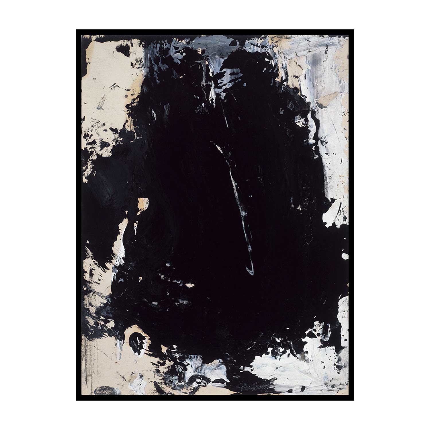 This striking and dramatic free-associative print features hard contrast, abstract shapes and soft lines for an intriguing conversation piece that won't clash, no matter where you put it.