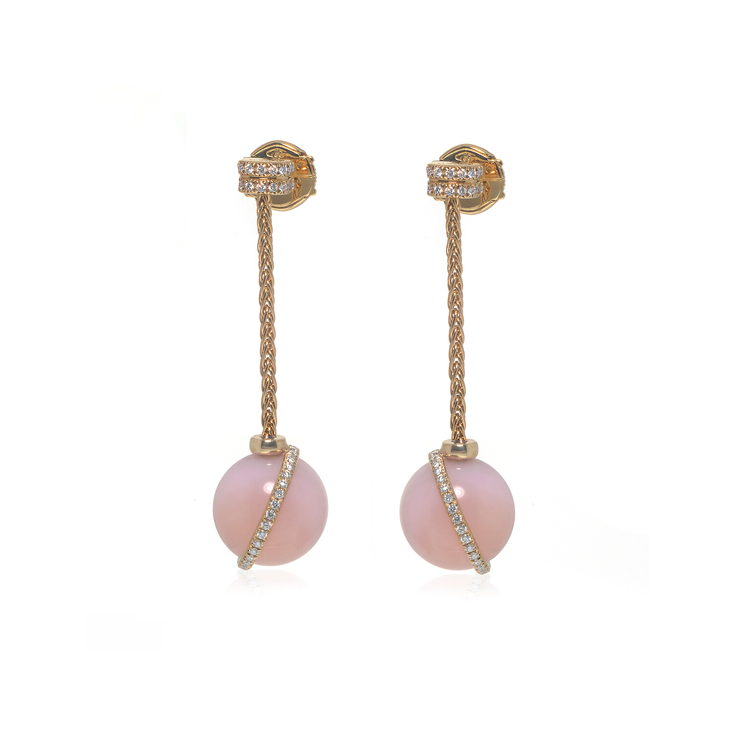 Baie Des Anges 18k Yellow Gold Diamond + Pink Opal Earrings // Store Display