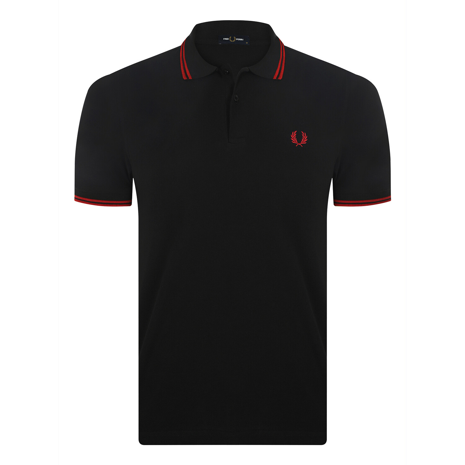 Enliven your weekend look with this Twin Tipped Polo Shirt from Fred Perry. Crafted from pure cotton fabric, this piece is cut with a fold down collar and two-button placket for easy dressing. Featuring short sleeves and ribbed cuffs for added comfort, this is accented with contrasting colored stripes on collar and sleeves for a smart finish. The look is complete with the brand's logo embroidered at the chest.