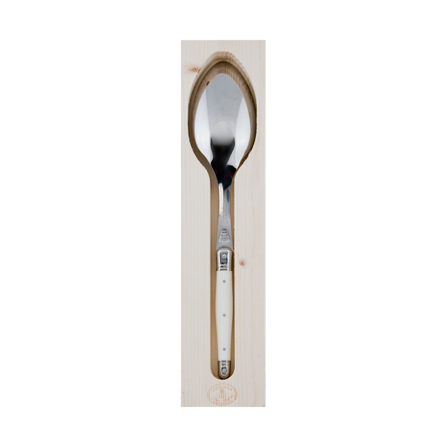 The Jean Dubost Serving Spoon in Ivory is the perfect luxury utensil, and the height of Laguiole's centuries-old craftsmanship. With its iconic bee bolster, lustrous stainless steel, and gold detailing, you'll love showing it off at your next dinner party.