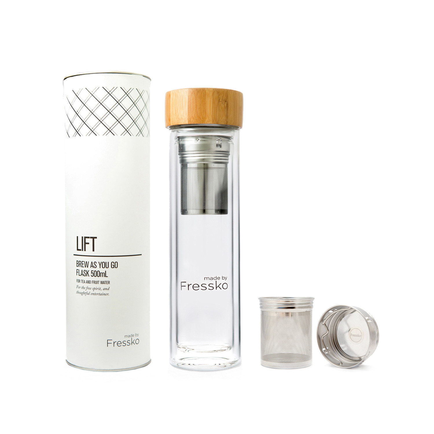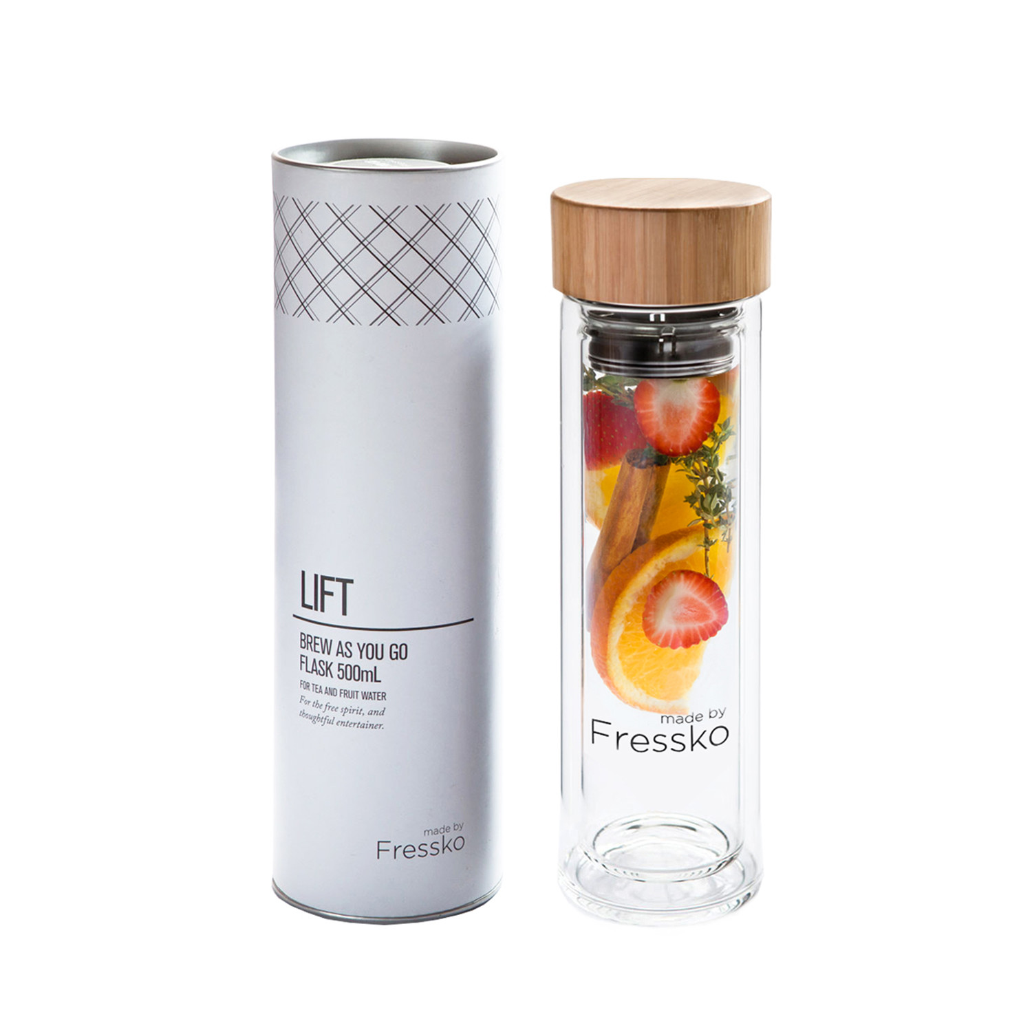 This stylish, chemical-free, double glassed Fressko Flask, which includes Fressko’s 2-in-1 “Infuse” Filter, is the perfect companion for creating your favorite fruit-infused cocktail, brewing your special tea blend or simply mixing your coffee; all while you brew as you go.