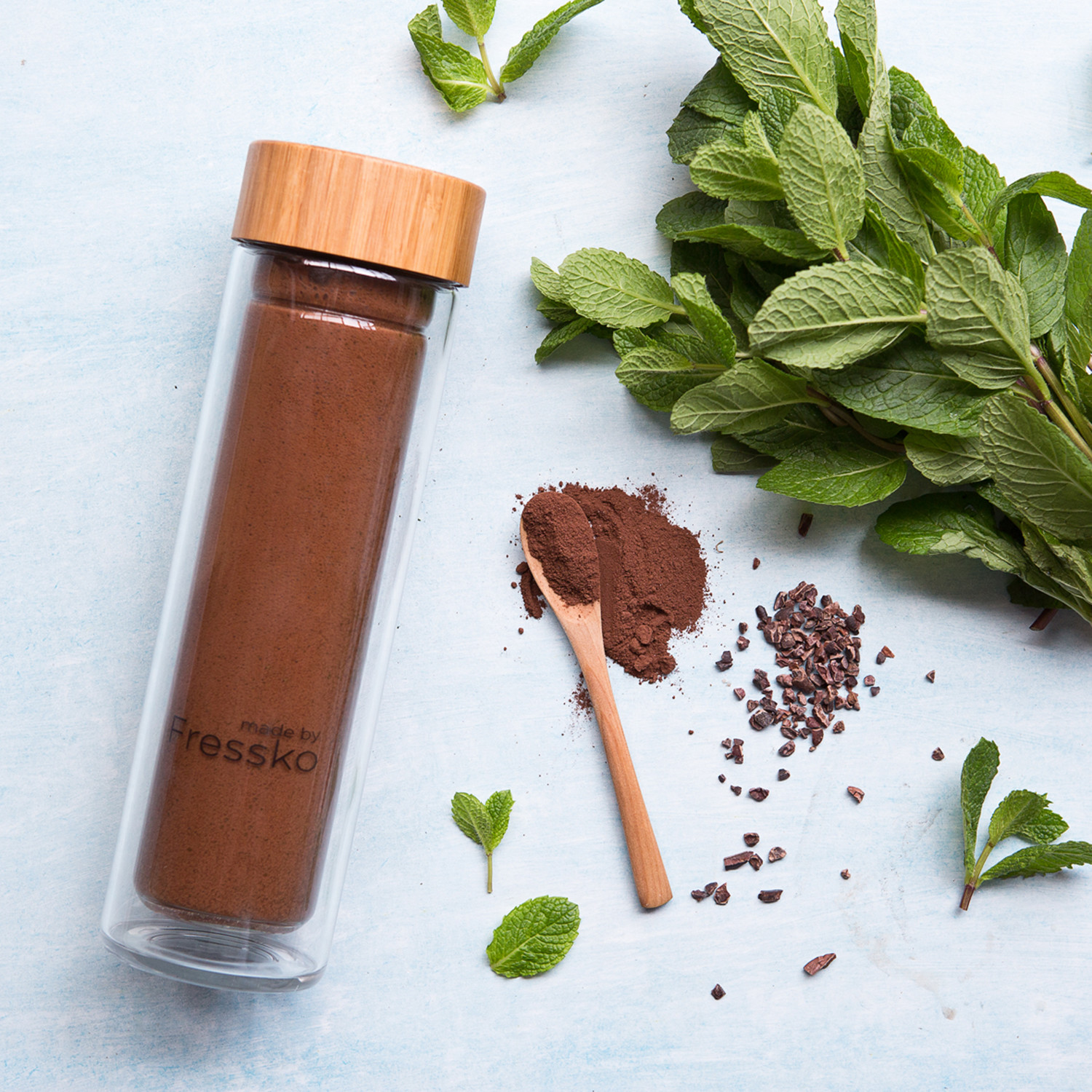 Simply remove Fressko’s 2-in-1 “Infuse” Filter, unscrew the bottom component, add your desired fresh fruits, vegetables and herbs, lock the Short “Infuse” Filter component back into place and let the water soak up the nutrients. This flask is made with double-walled glass to ensure the contents stay hot or chilled for several hours with a leak-proof bamboo lid.