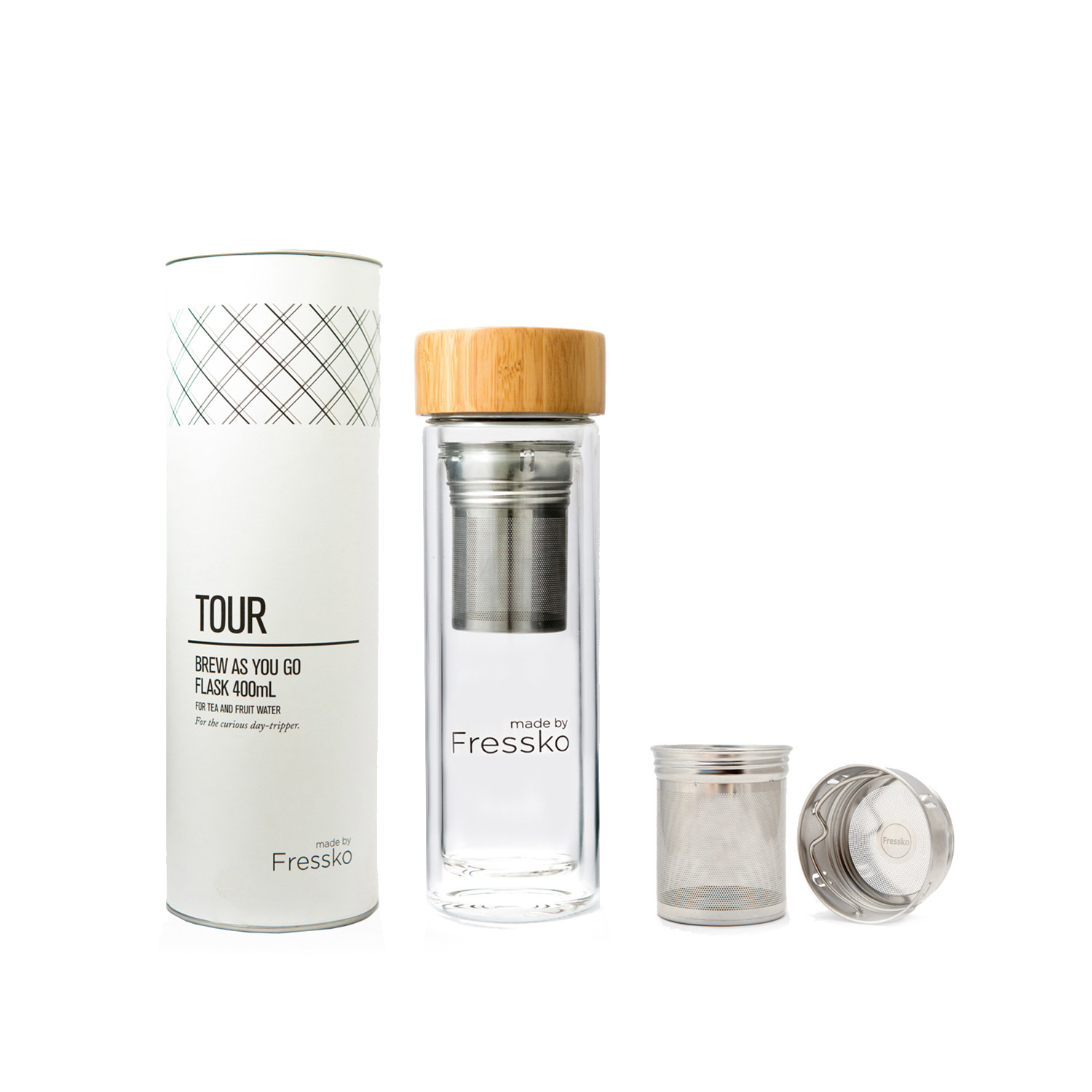 This stylish, chemical-free, double glassed Fressko Flask, which includes Fressko’s 2-in-1 “Infuse” Filter, is the perfect companion for creating your favorite fruit-infused cocktail, brewing your special tea blend or simply mixing your coffee; all while you brew as you go.