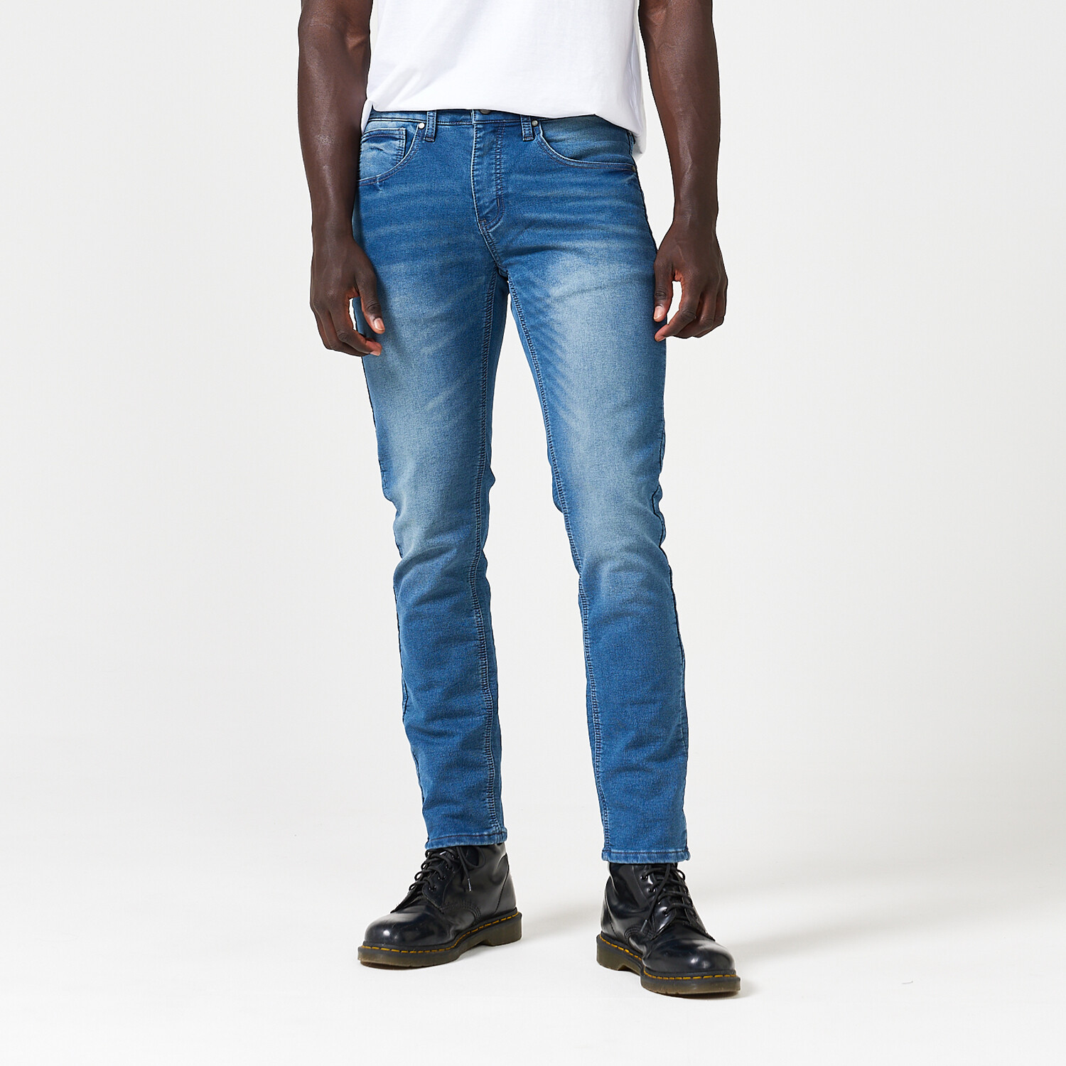Made with style and comfort in mind, The Slim is for the man who wants looser fit with a more relaxed look and feel around the legs, enabling unlimited moveability. Each pair of Friendly Blues is made with our premium french terry denim while using recycled cotton to provide our customers with supreme stretch and comfort.