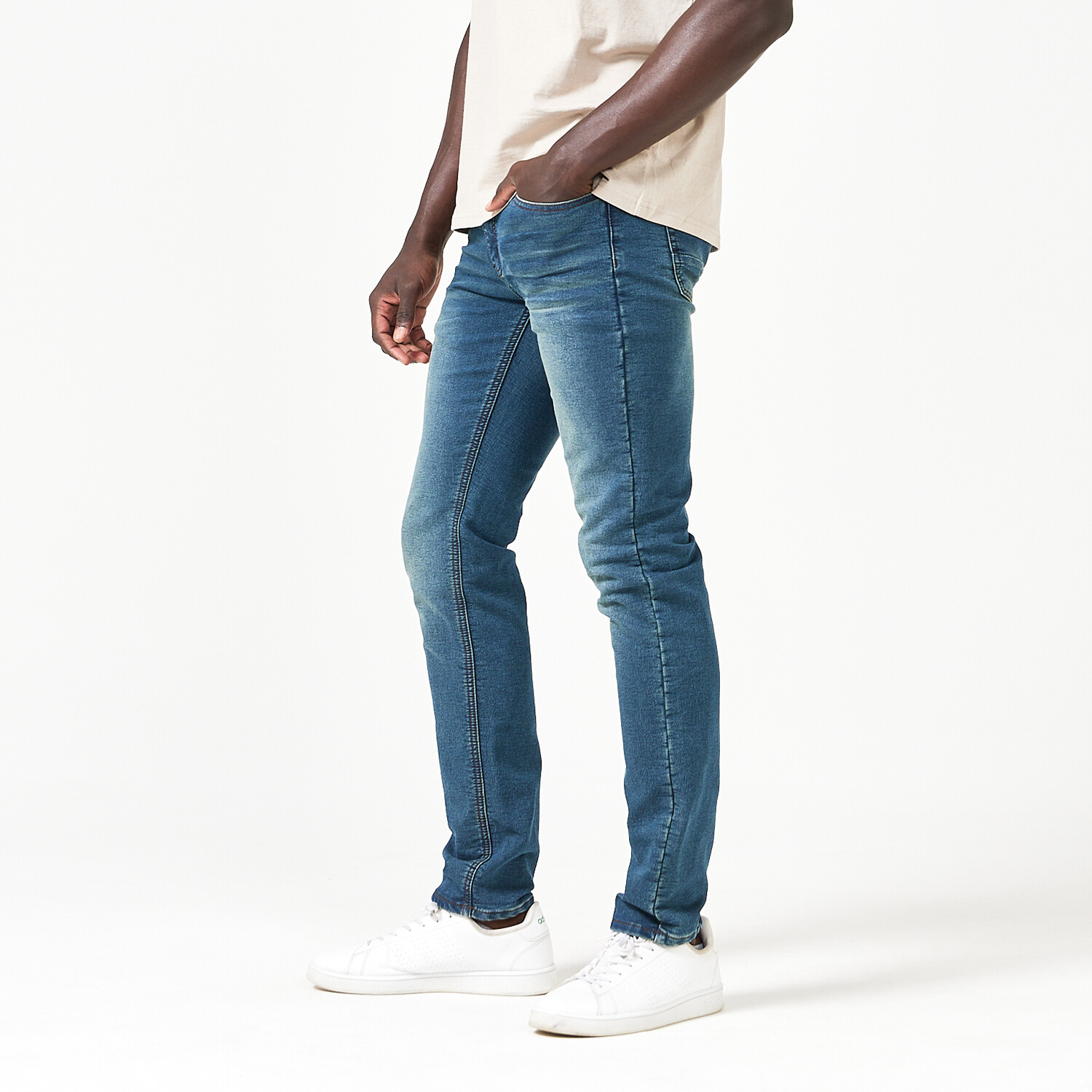 Made with style and comfort in mind, The Slim is for the man who wants looser fit with a more relaxed look and feel around the legs, enabling unlimited moveability. Each pair of Friendly Blues is made with our premium french terry denim while using recycled cotton to provide our customers with supreme stretch and comfort.