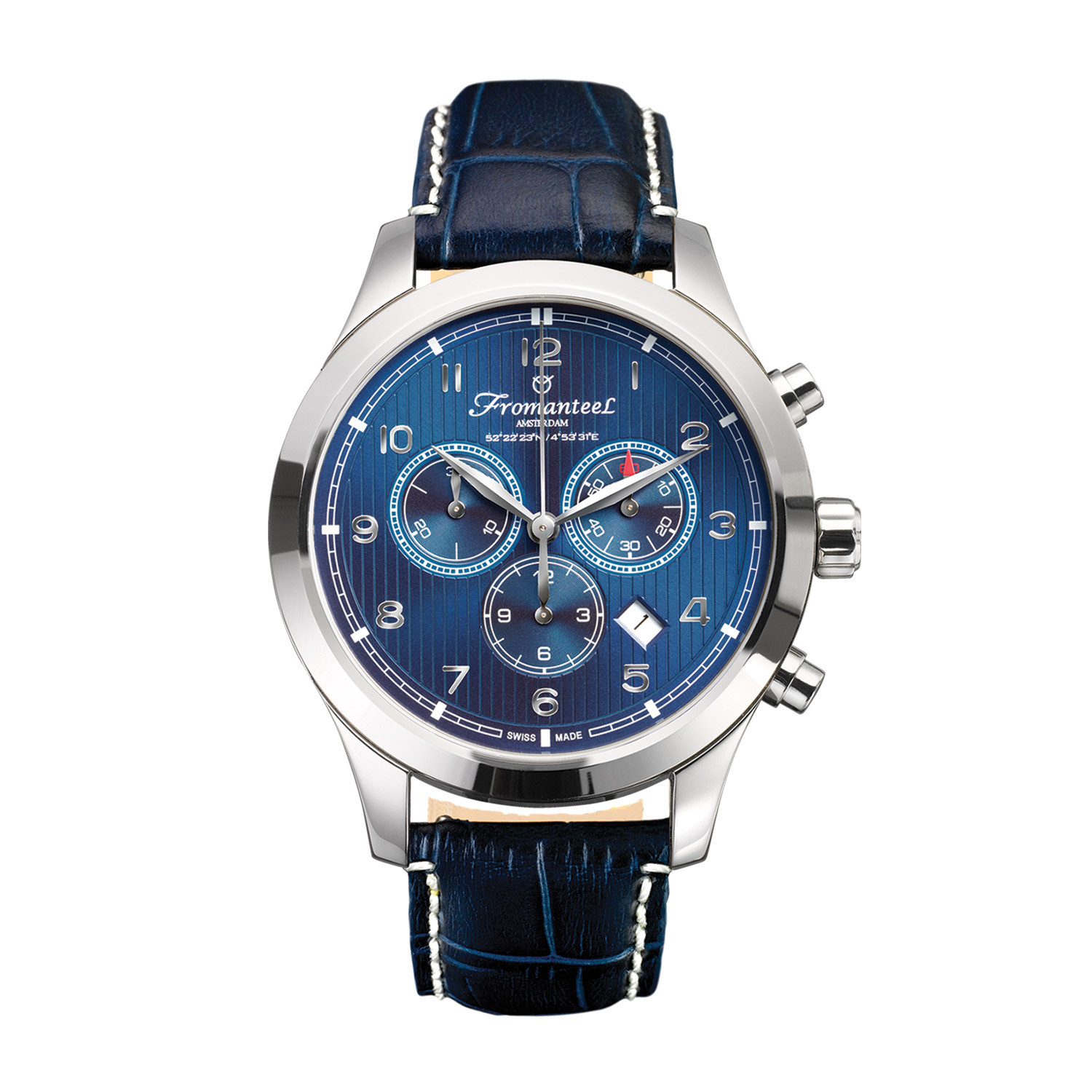 The Amsterdam Nautique Chrono resembles the city of Amsterdam. Walking through Amsterdam gives you a high-end and easy-going feeling. This watch is created to give you that same feeling as the city gives you. The watch has a very luxury look to it without being very loud. It’s very humble and that’s what they're known for at Fromanteel.