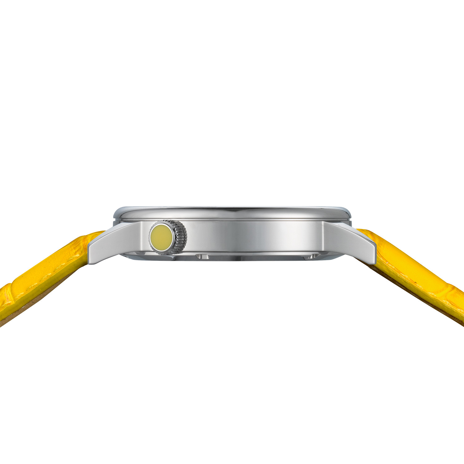 The Globetrotter Series GMT is the ultimate travel companion. The watch is especially designed to display a second time zone that gives the timepiece an extra dimension. The yellow hand for the second time zone is one of the many details that make this watch different from others. The white color of the dial gives it a well-arranged look.