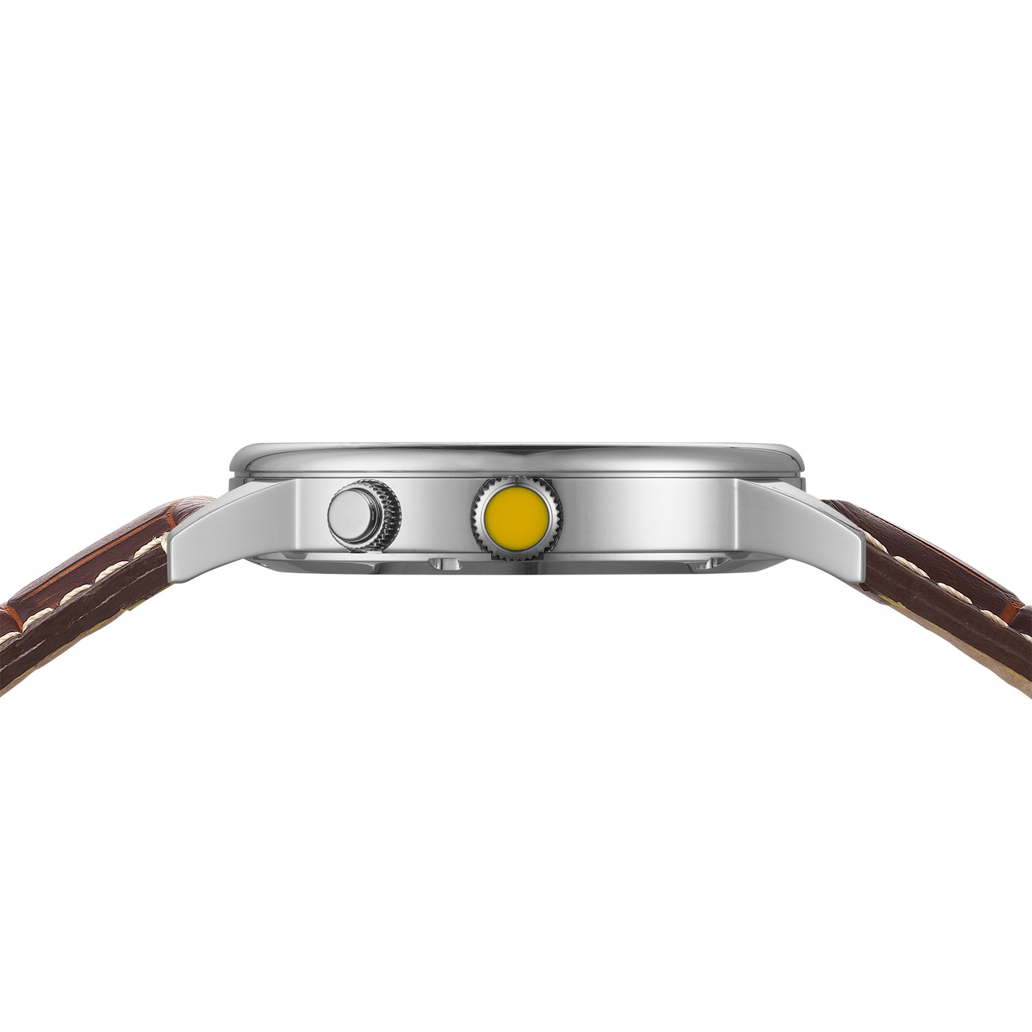 The Globetrotter Moonphase Quartz is a watch designed for the traveling man. Created to give as much information as needed the Chrono has a well thought appearance. The watch bears all the functions of a chronograph. The Moonphase has a distinguished look; combining the black dial with white details creates a timeless design.