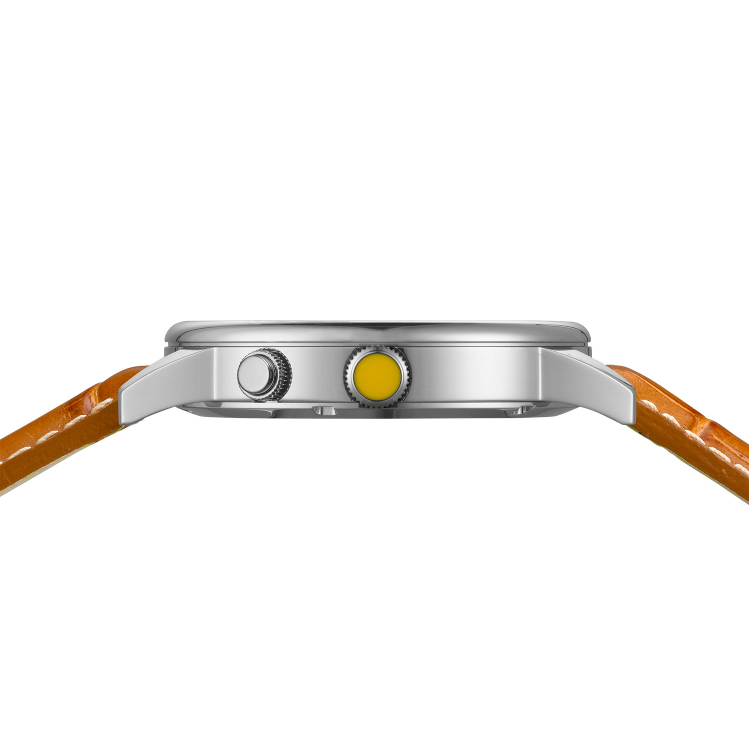 The Globetrotter Moonphase Quartz is a watch designed for the traveling man. Created to give as much information as needed the Chrono has a well thought appearance. The watch bears all the functions of a chronograph. The Moonphase has a distinguished look; combining the black dial with white details creates a timeless design.
