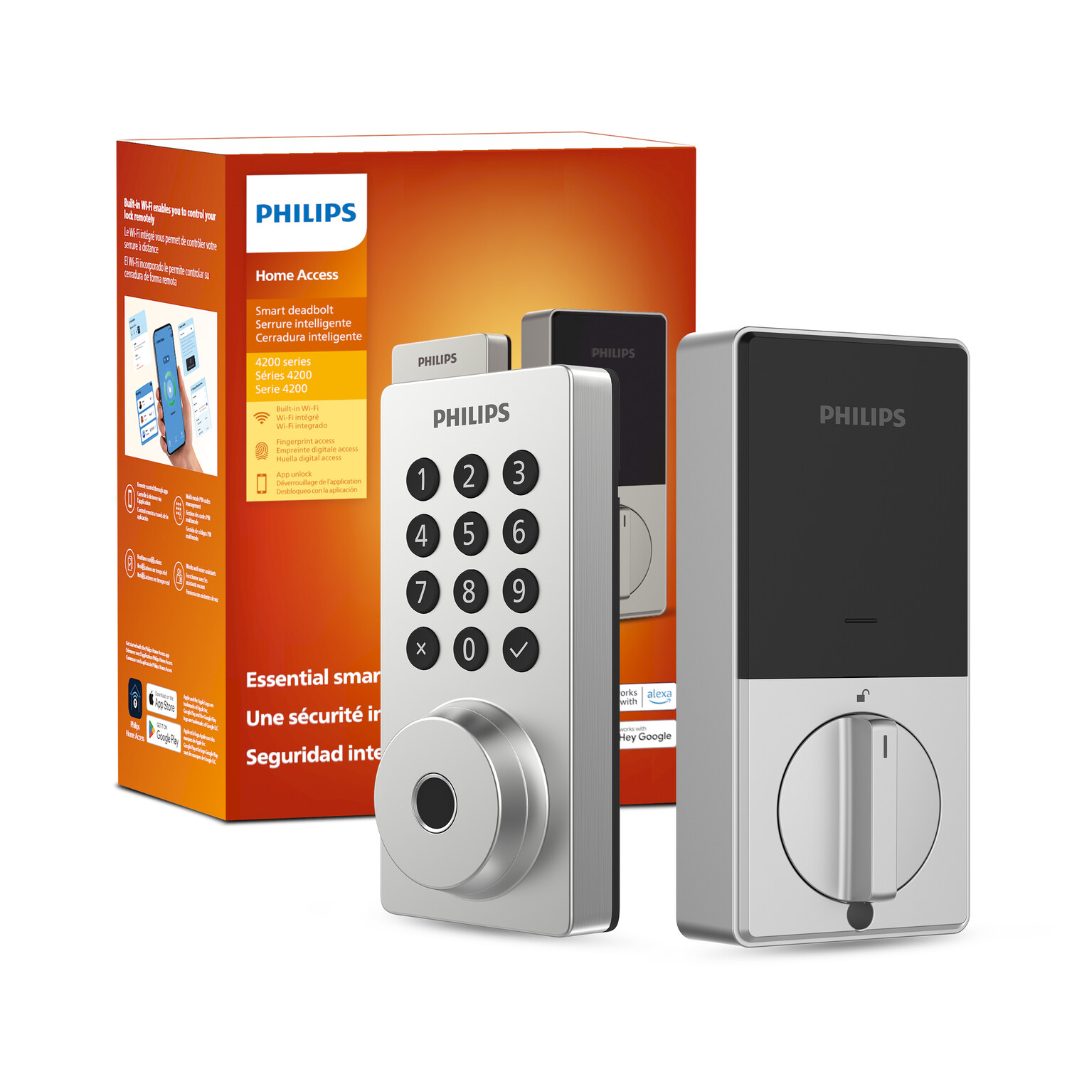 Philips 4000 Series WiFi Fingerprint Smart Deadbolt. Built-in Wi-Fi and Bluetooth, no hub required.