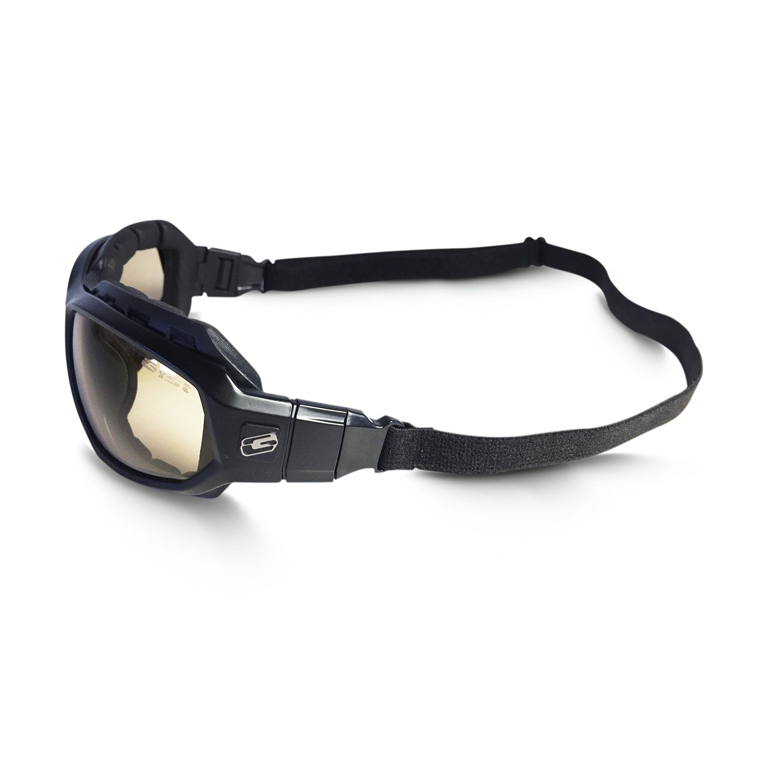 Transforming from high performance sunglasses to the ultimate sports goggles, SG1-15 offers full UV spectrum and military grade impact protection in a unique design optimized for athletes. The removable temples and foam-padded gasket allow them to be easily converted into buoyant water-sports goggles that conveniently float on the surface of the water should you lose them trying to land that cool new trick.