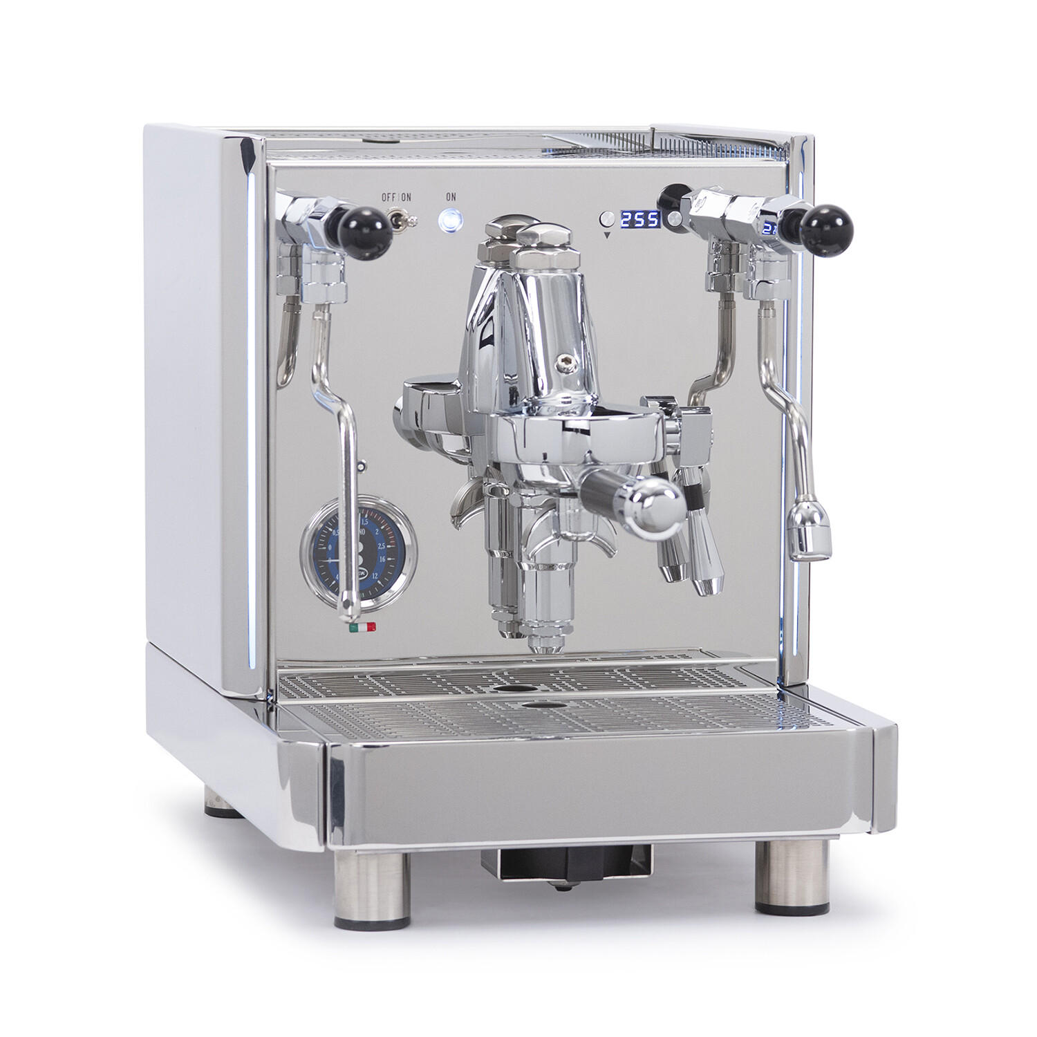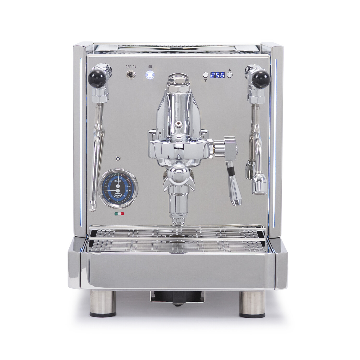 The Quick Mill Vetrano 2B LED is an Italian-made, semi-automatic dual boiler espresso machine that is impressive inside and out. The Vetrano has a 1.4 L, 1100W steam boiler and 0.75 L, 800 W group boiler, both of which are insulated and stainless steel to add additional longevity to your purchase. This allows for quicker and more stable simultaneous coffee making and milk steaming. Both boilers are insulated to allow for quicker heating and more reliable pressure stability and are coated in Quick Mill-patented Ternary Eco Alloy (T.E.A.) to drastically decrease the possibility of metal in drinks delivered.