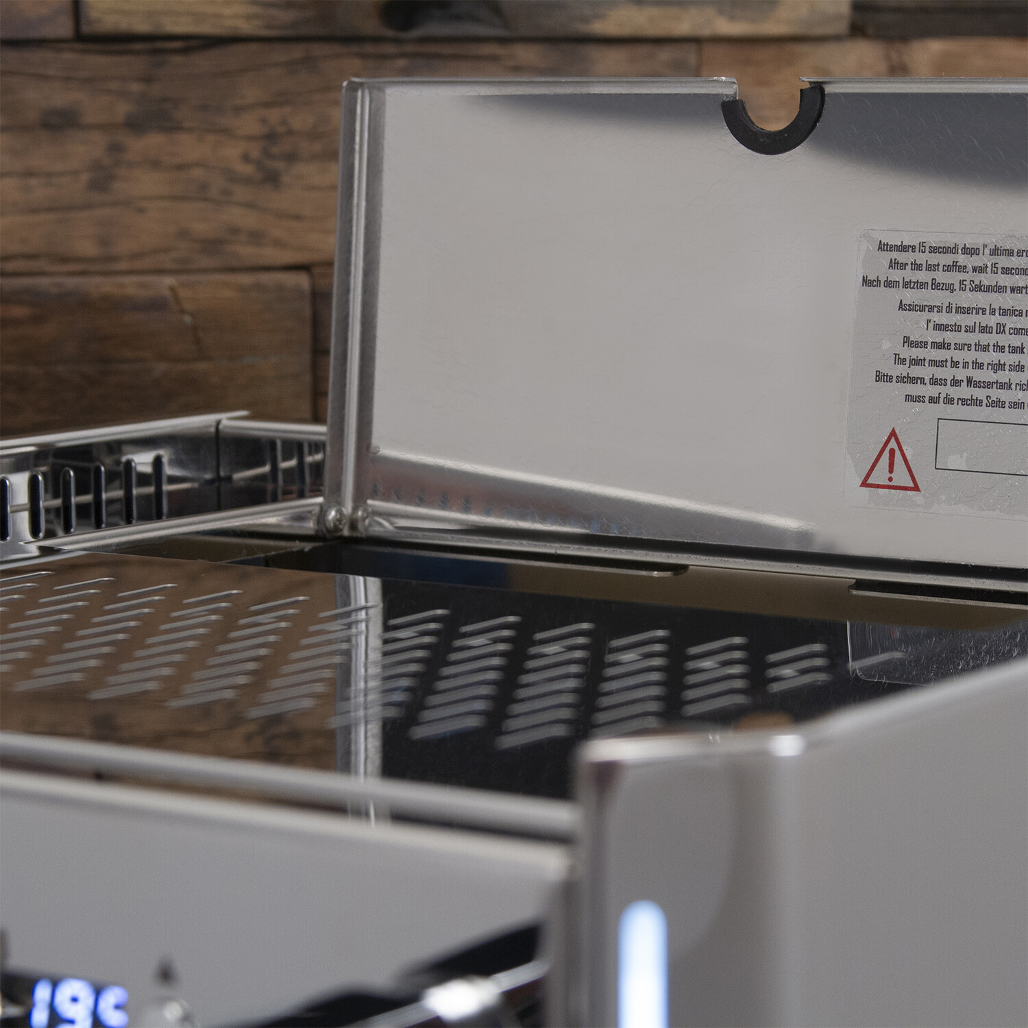 The PID temperature controller has an updated button design that independently controls the group boiler with a 1º C/F adjustment. Working with the PID controller is an integrated shot timer to take the guesswork out of making the perfect pour. Also included is the option to install a drain system and large stainless steel drip tray. The Vetrano 2B LED also includes a massive 3 L water reservoir with the option to bypass the reservoir completely and be directly plumbed to a water line so you don't need to manually fill your water tank.